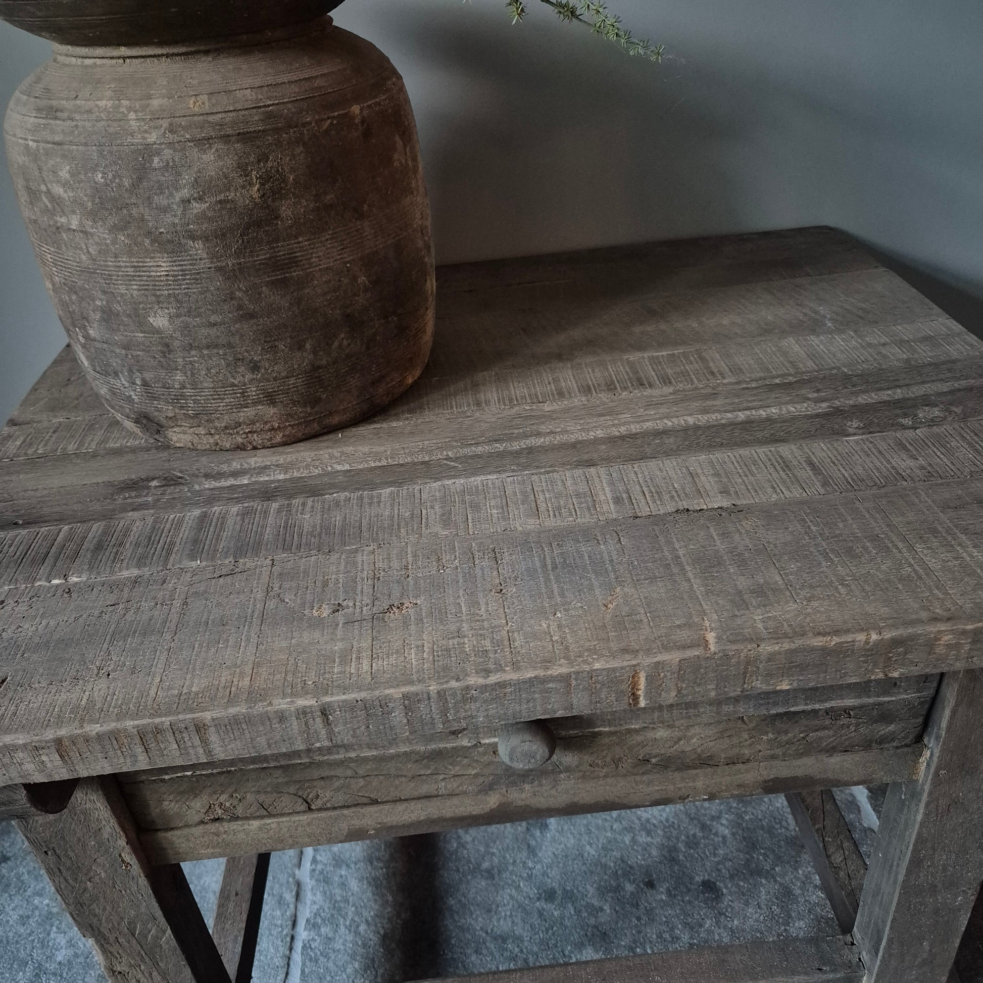 Een prachtige bijzettafel gemaakt van oud hout driftwood met lade. Een prachtig robuust exemplaar voor in een stoer, sober en landelijk interieur!