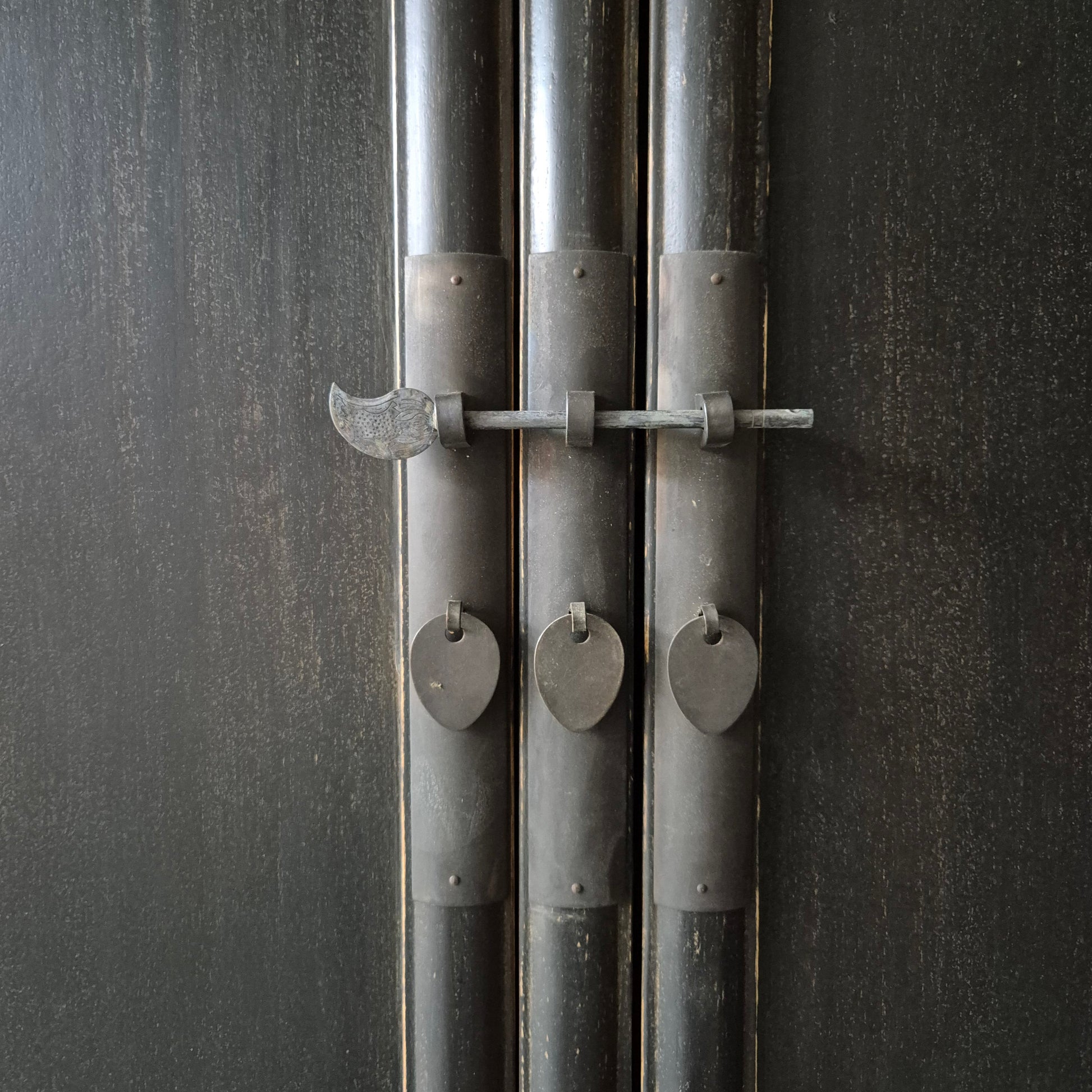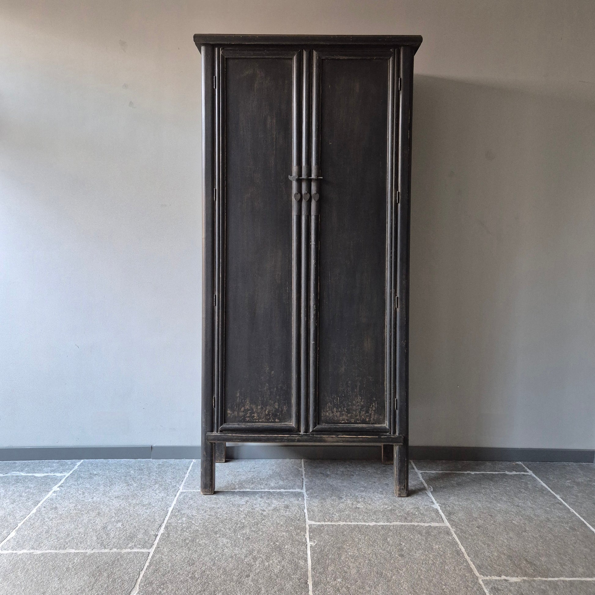 Een prachtige hoge 2-deurs kast gemaakt van hout in een oud zwarte kleur. De kast heeft 2 legplanken waardoor je er veel in kwijt kunt. Deze hoge kast staat perfect binnen een stoer, sober en landelijk interieur!