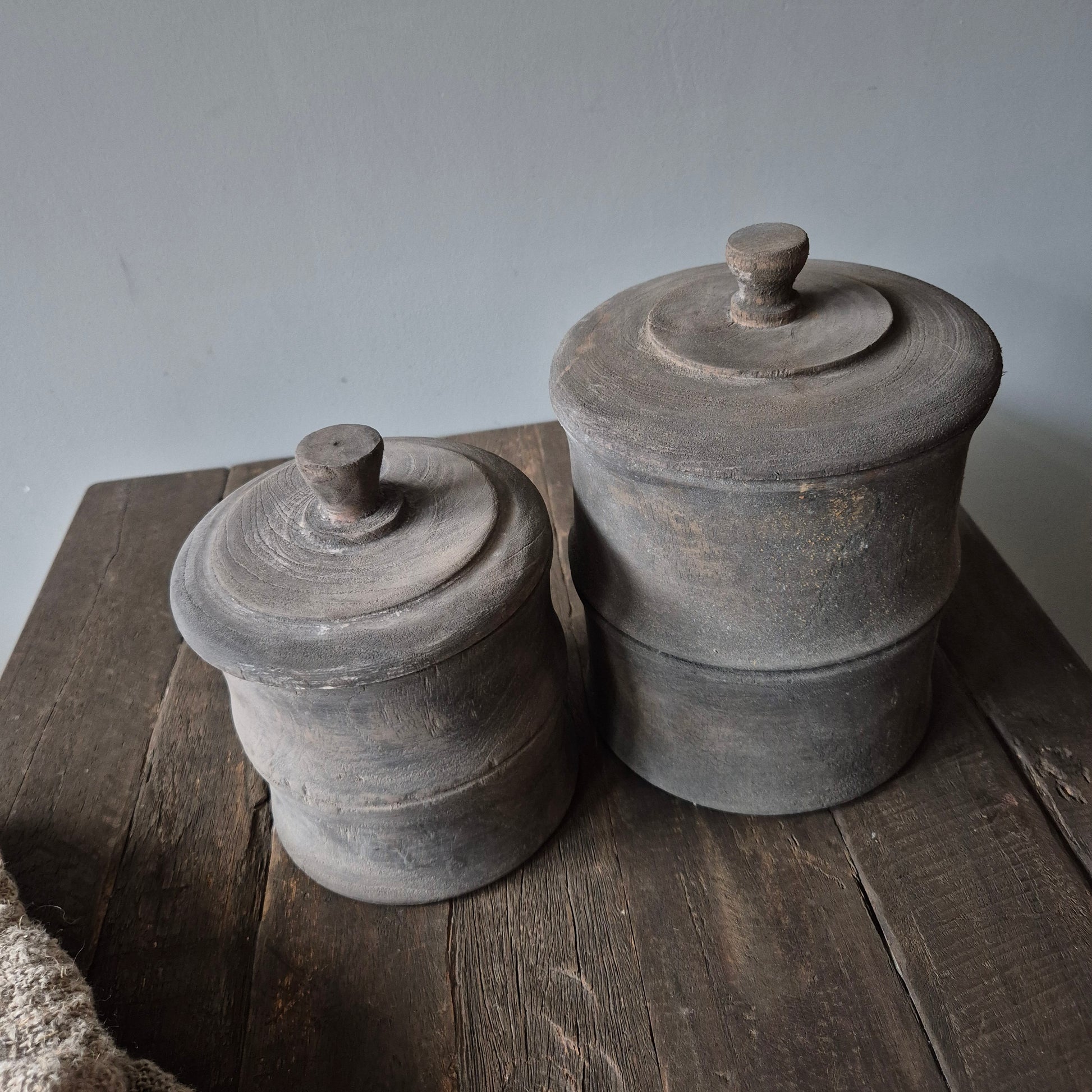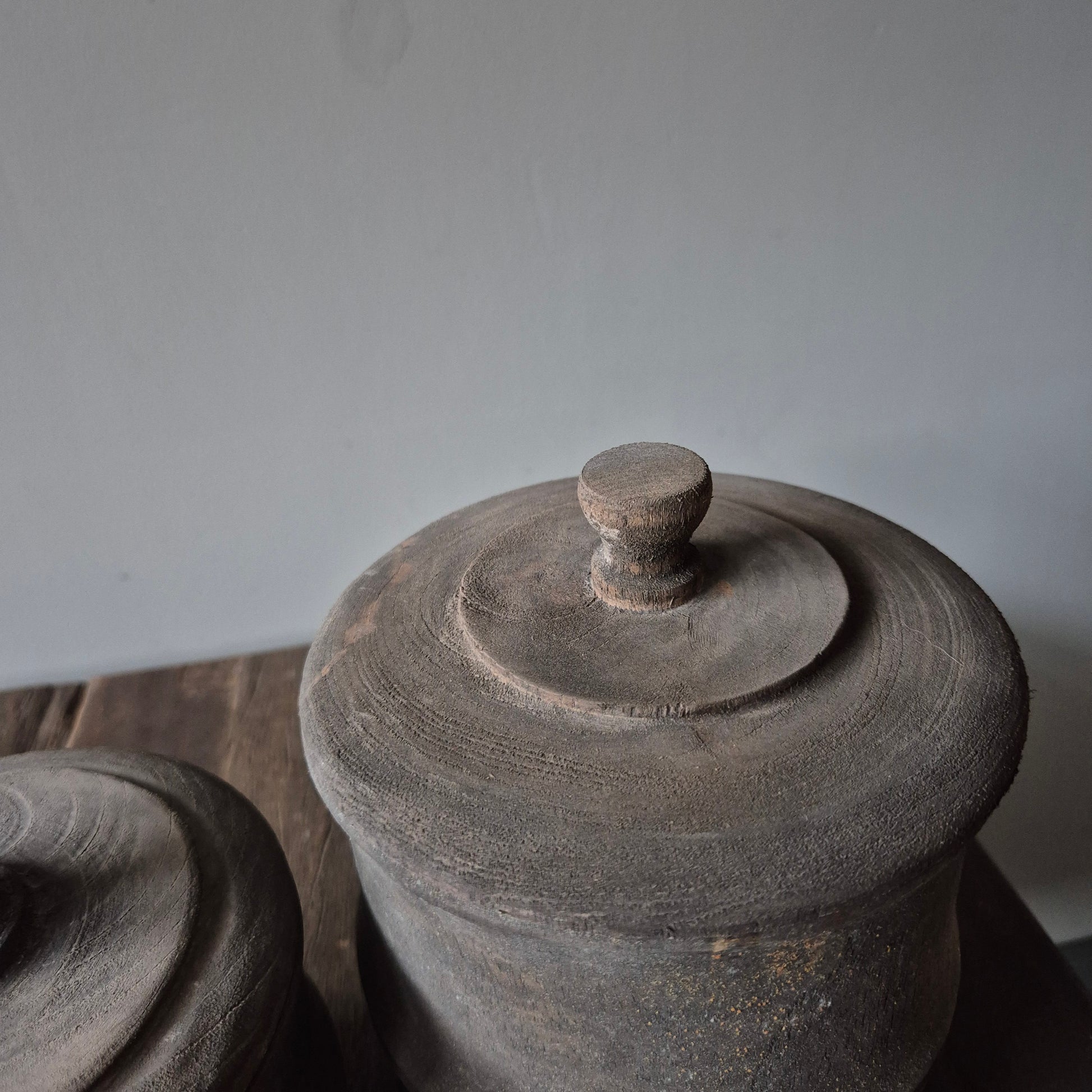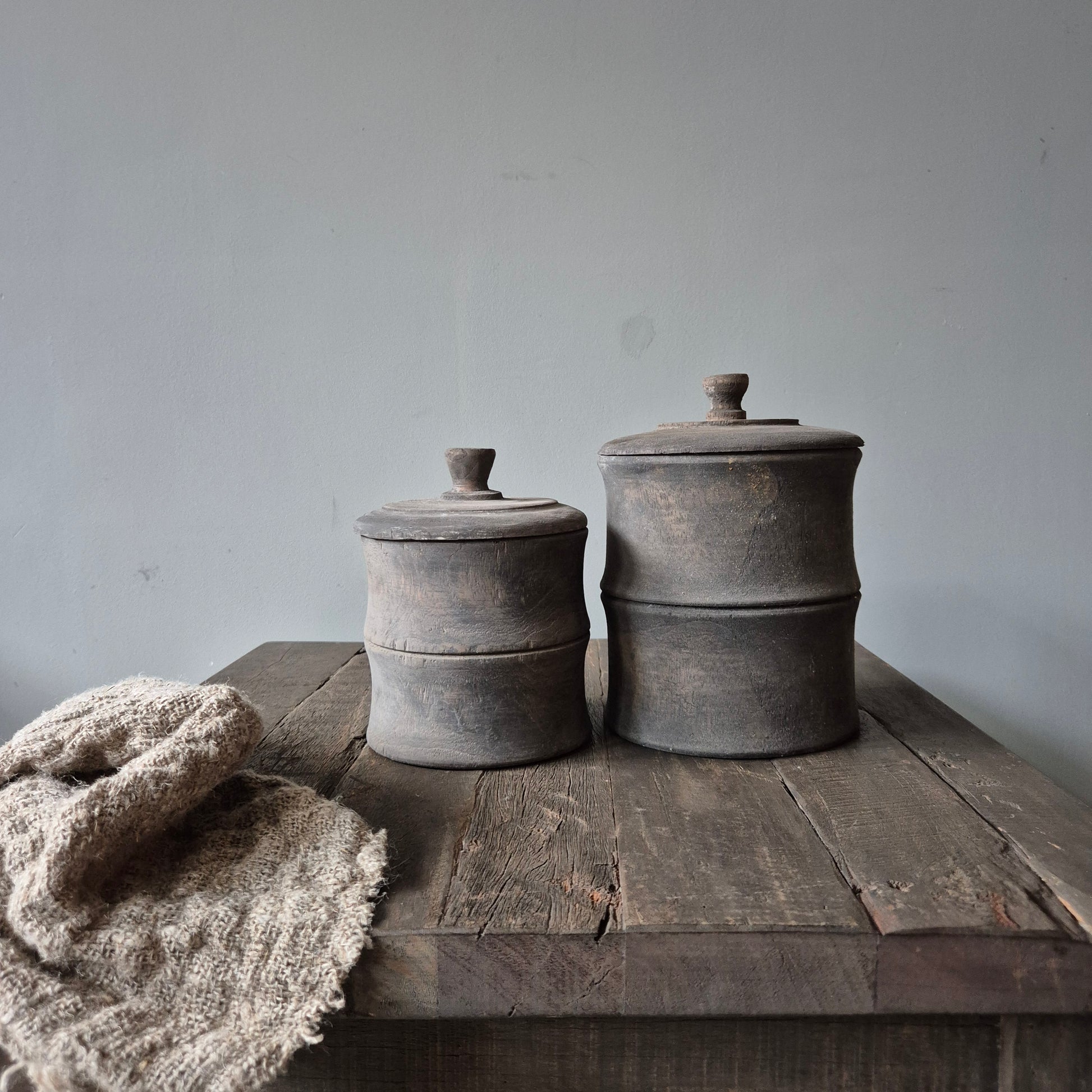 Een prachtig pot met deksel van hout maat S. Past perfect in een stoer, sober en landelijk interieur!