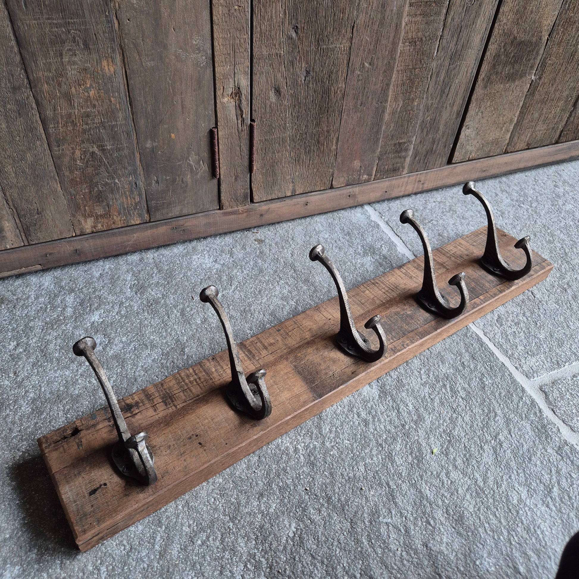 Een prachtige kapstok van een oud houten plank inclusief 5 dubbele ijzeren haken. Deze kapstok past perfect binnen een stoer sober en landelijk interieur!