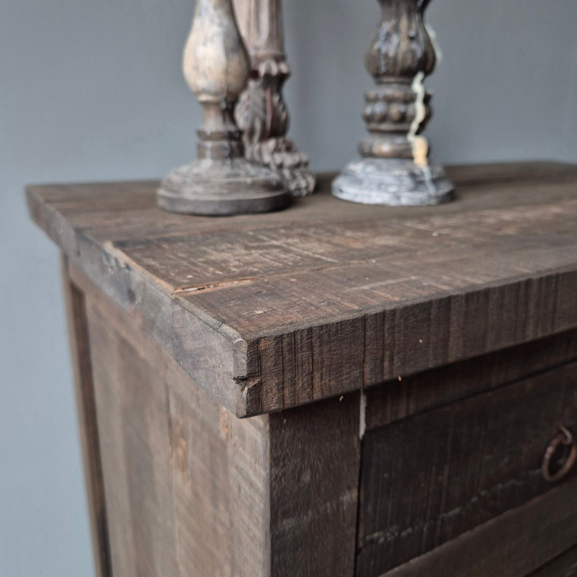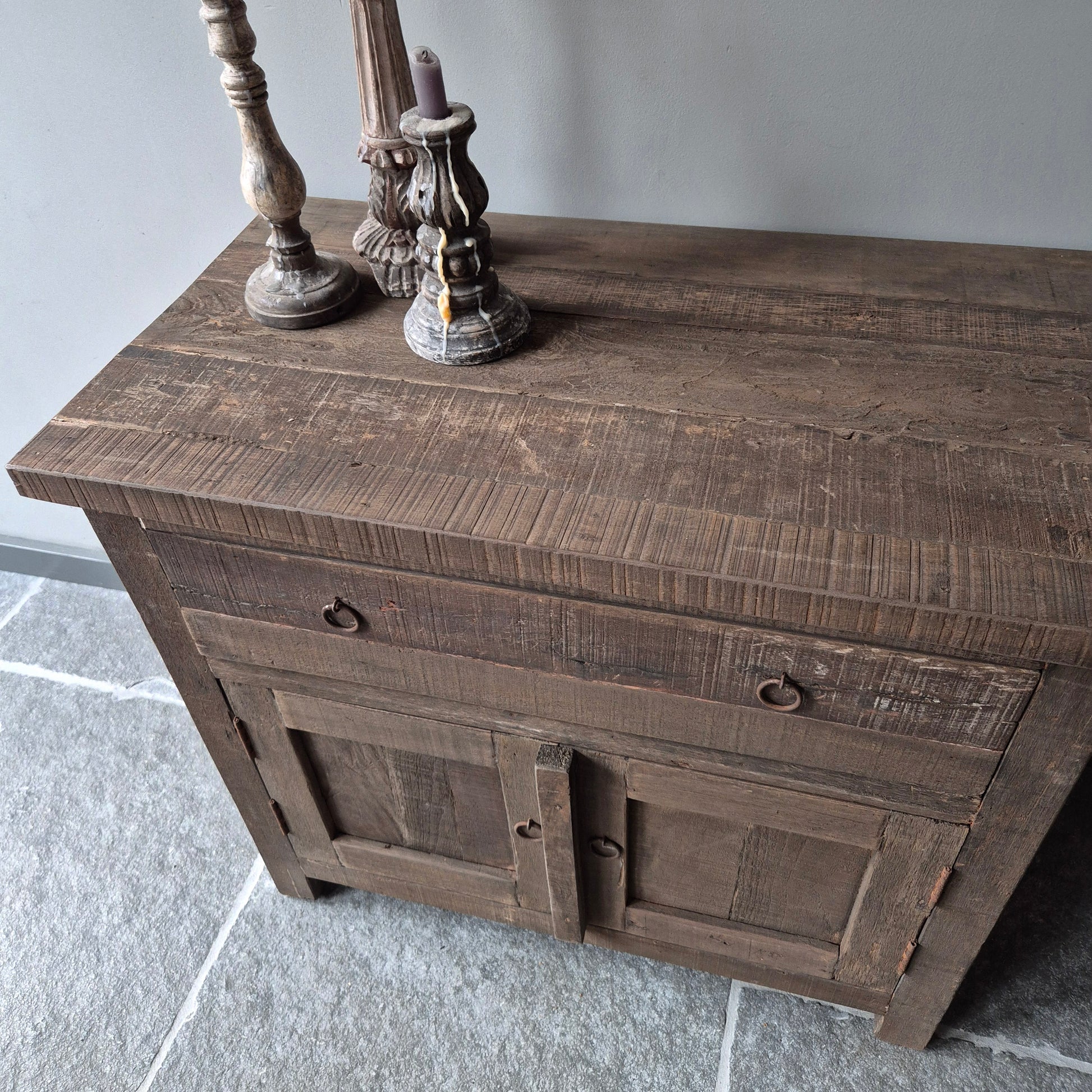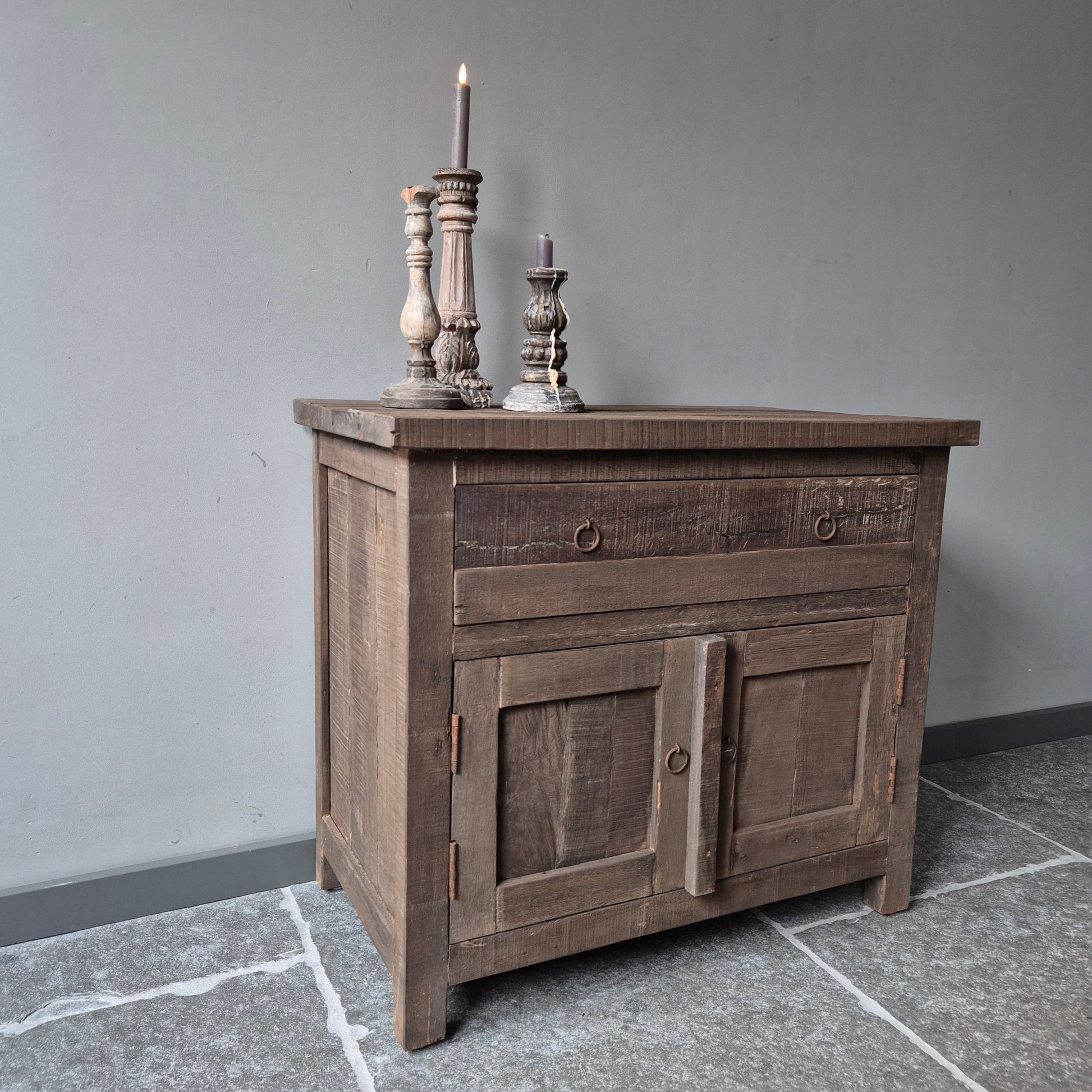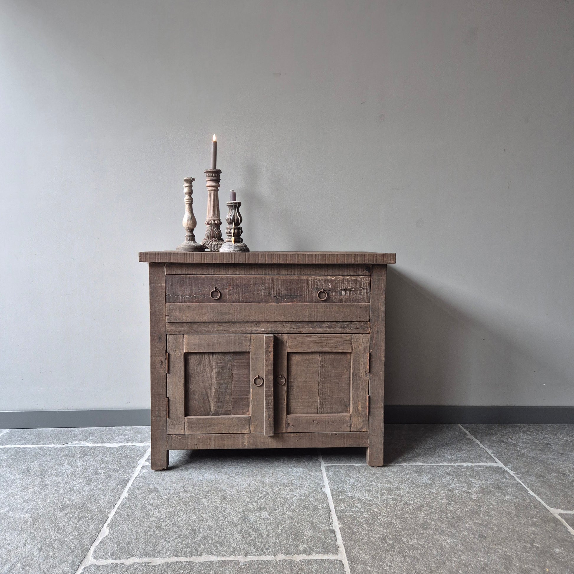 Een prachtig kastje gemaakt van oud hout Driftwood met 2 deurtjes en 1 lade. Een prachtig robuust exemplaar voor in een stoer, sober en landelijk interieur!