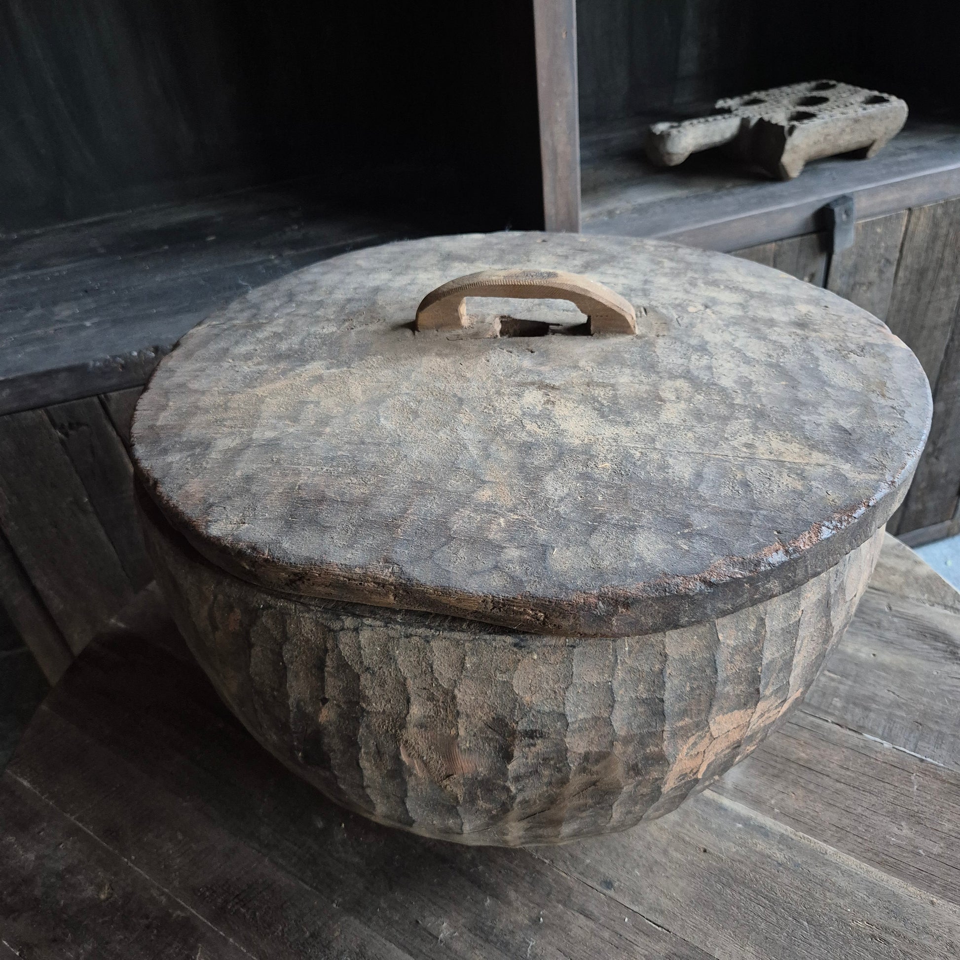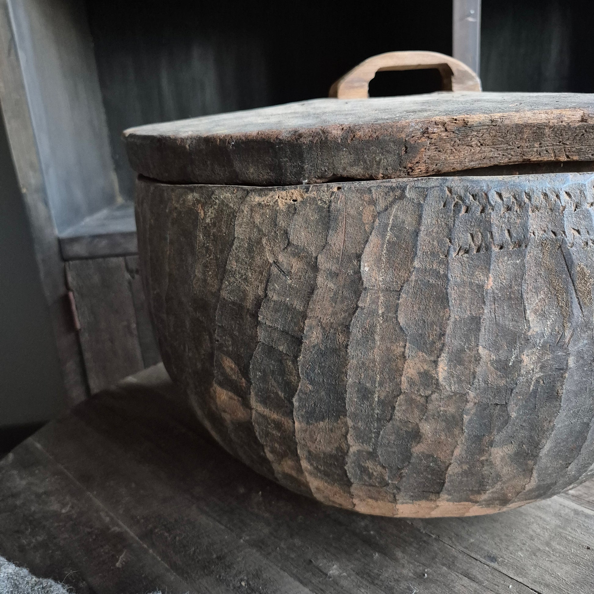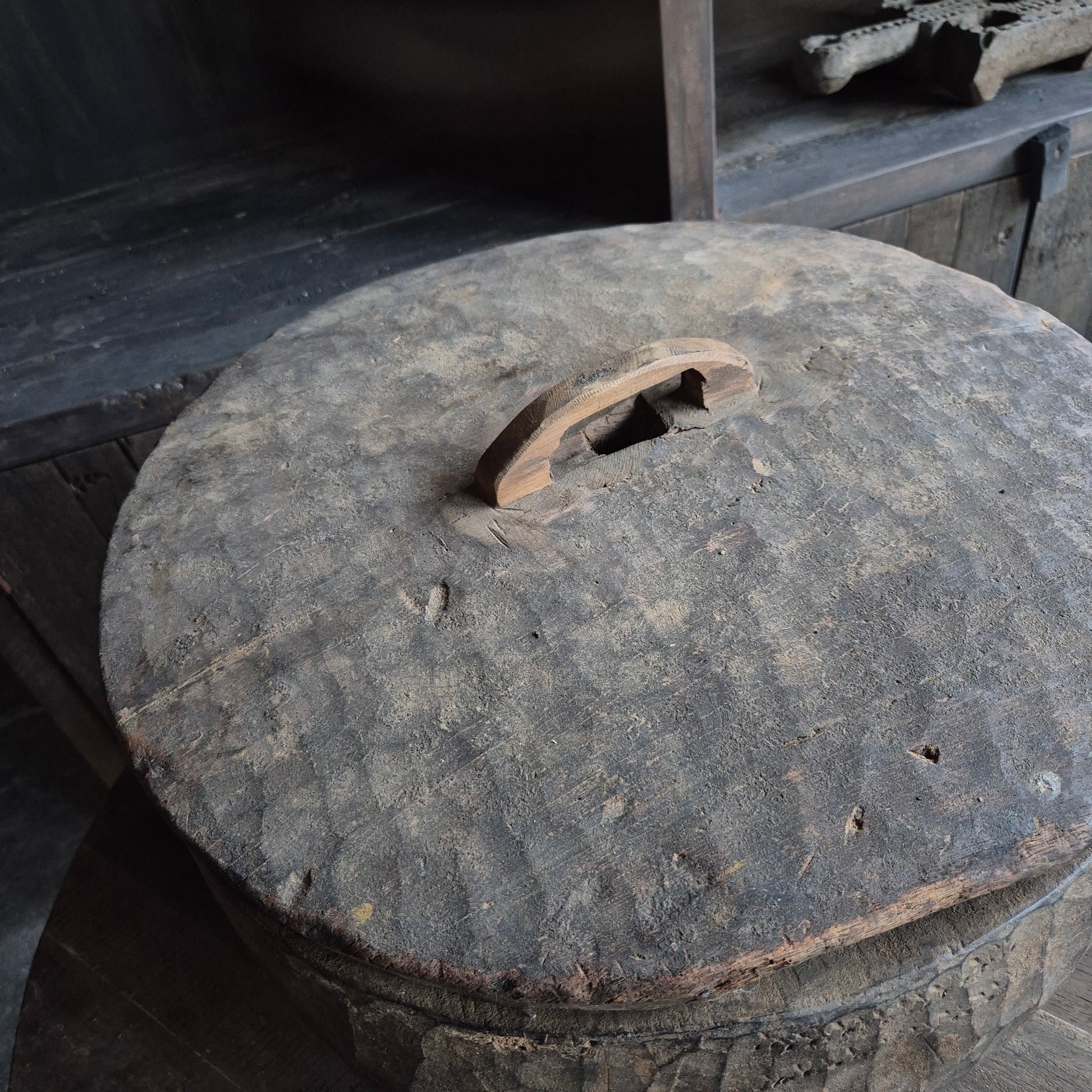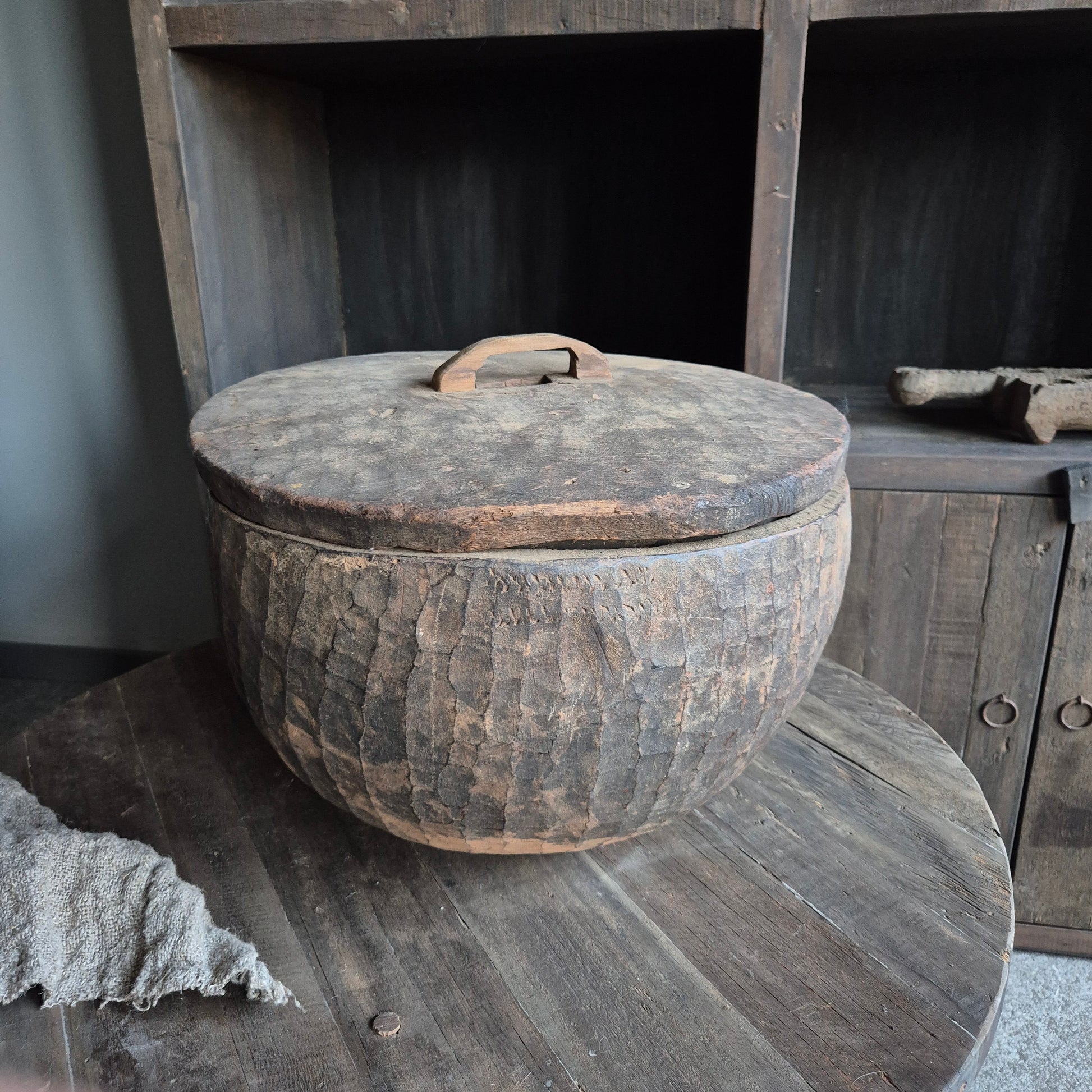 Een prachtig en uniek oud houten bak met deksel. Een pronkstuk voor in een stoer, sober en landelijk interieur!