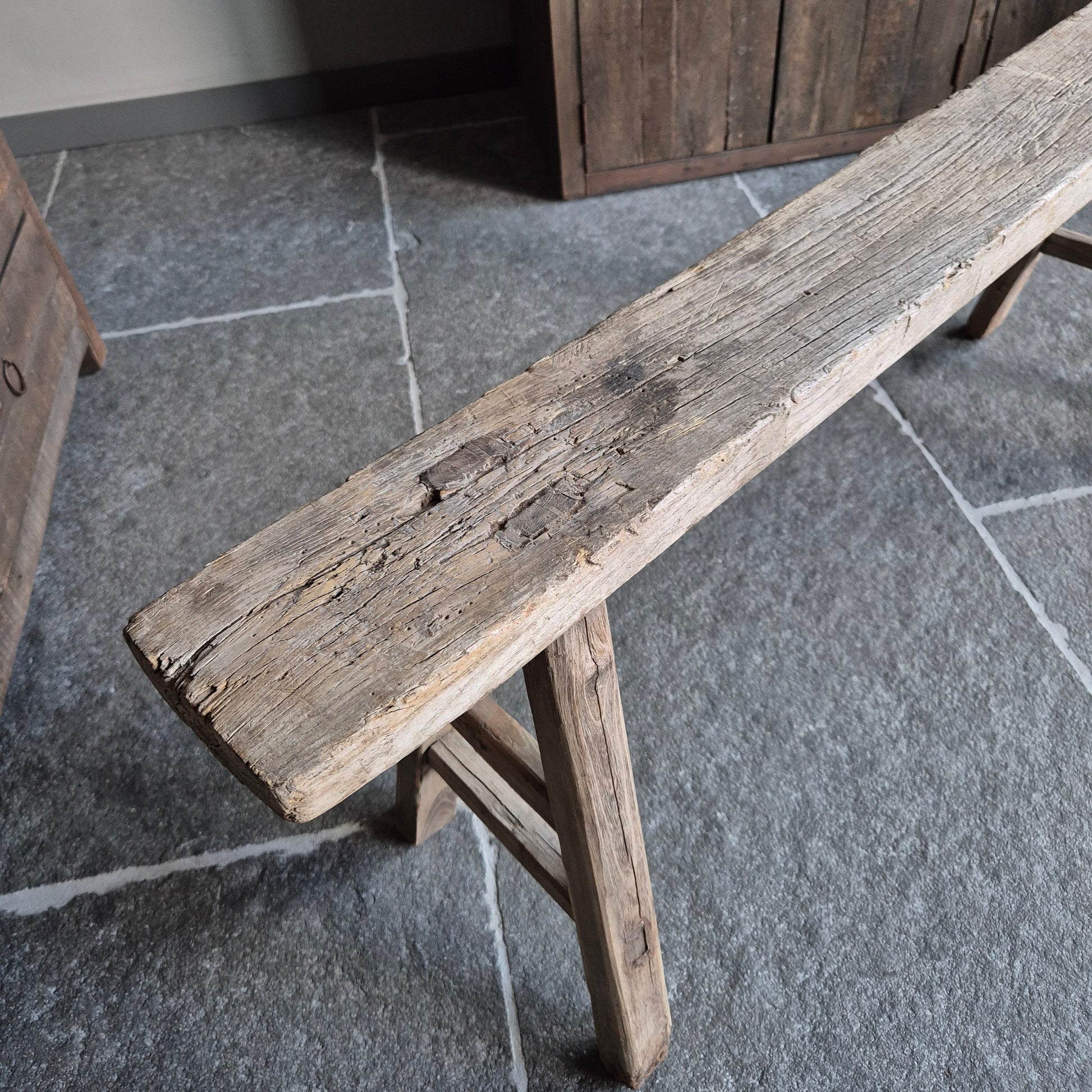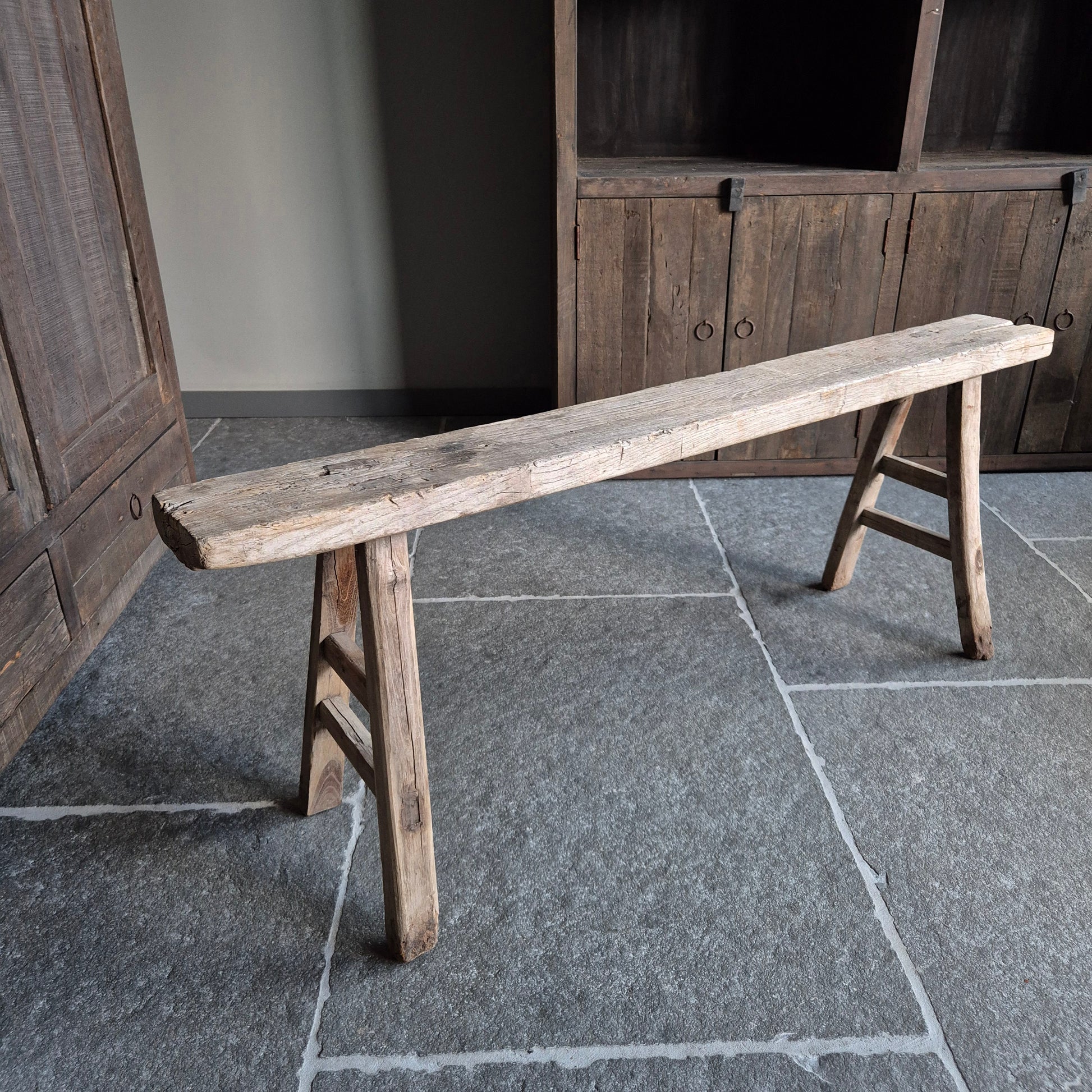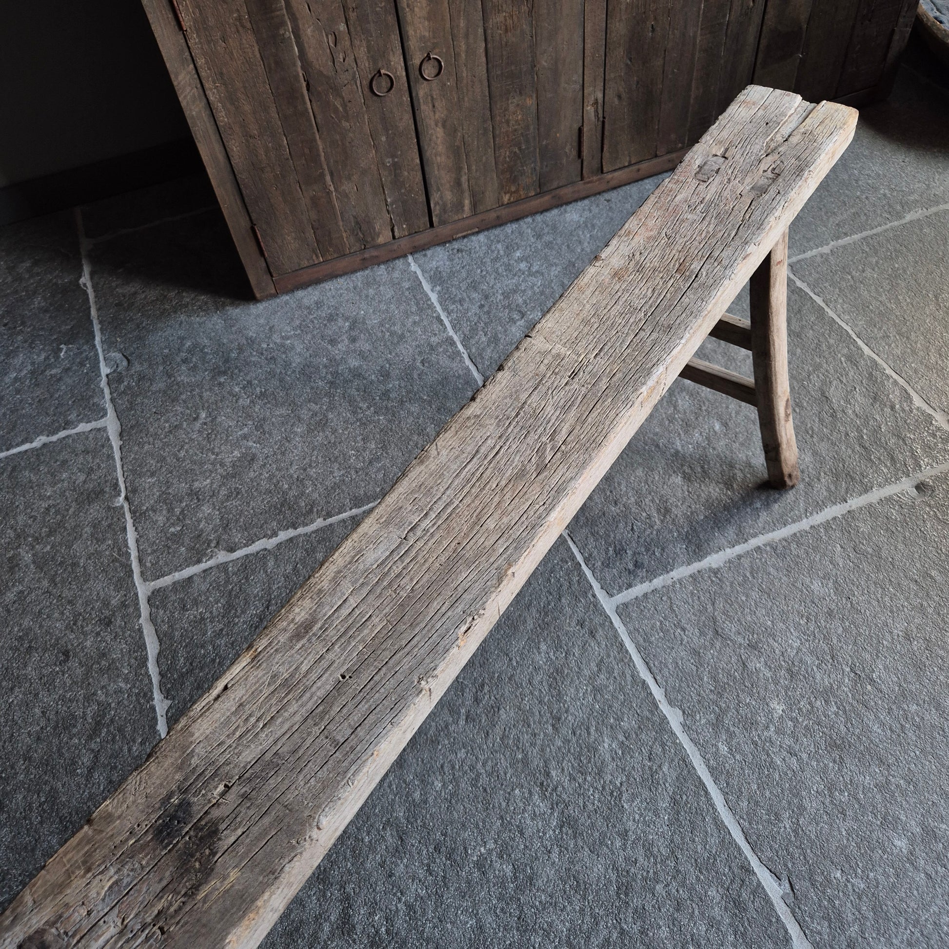 Een prachtig oud houten Chinese bankje. Een mooi en authentiek item binnen een stoer, sober en landelijk interieur!