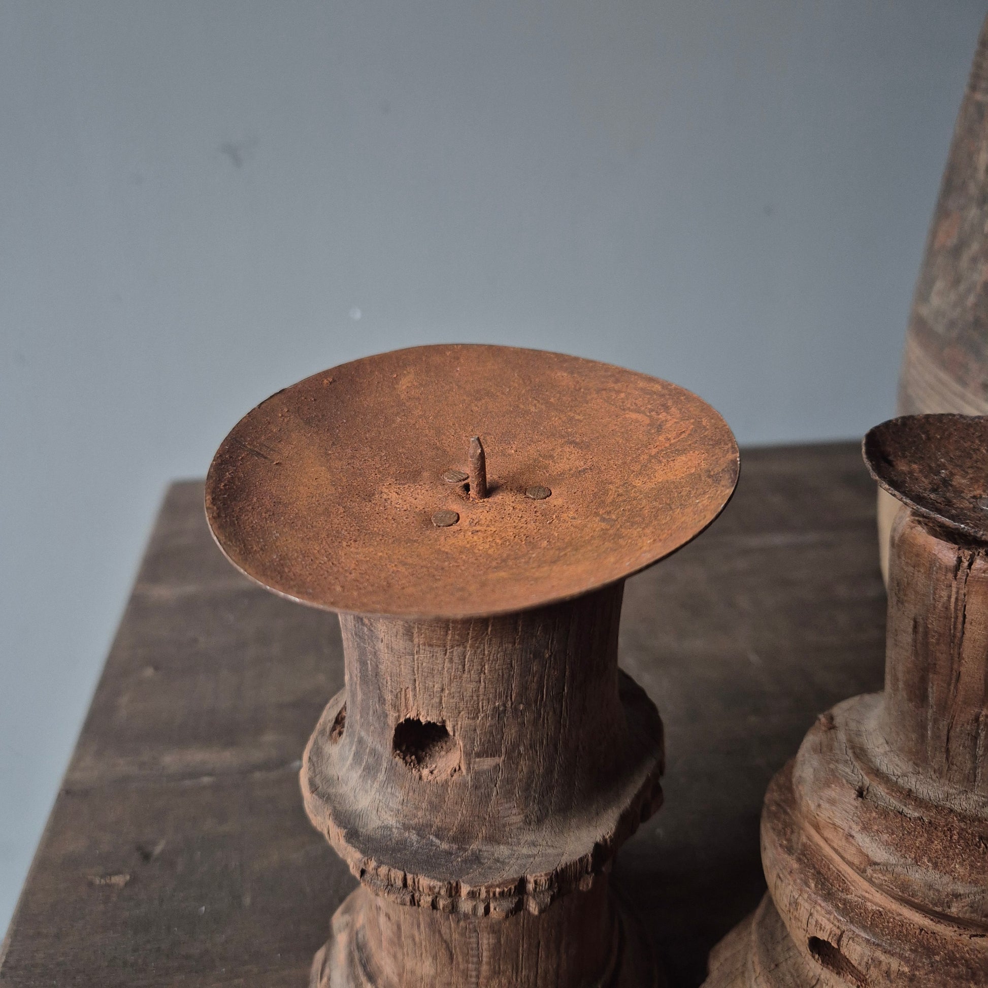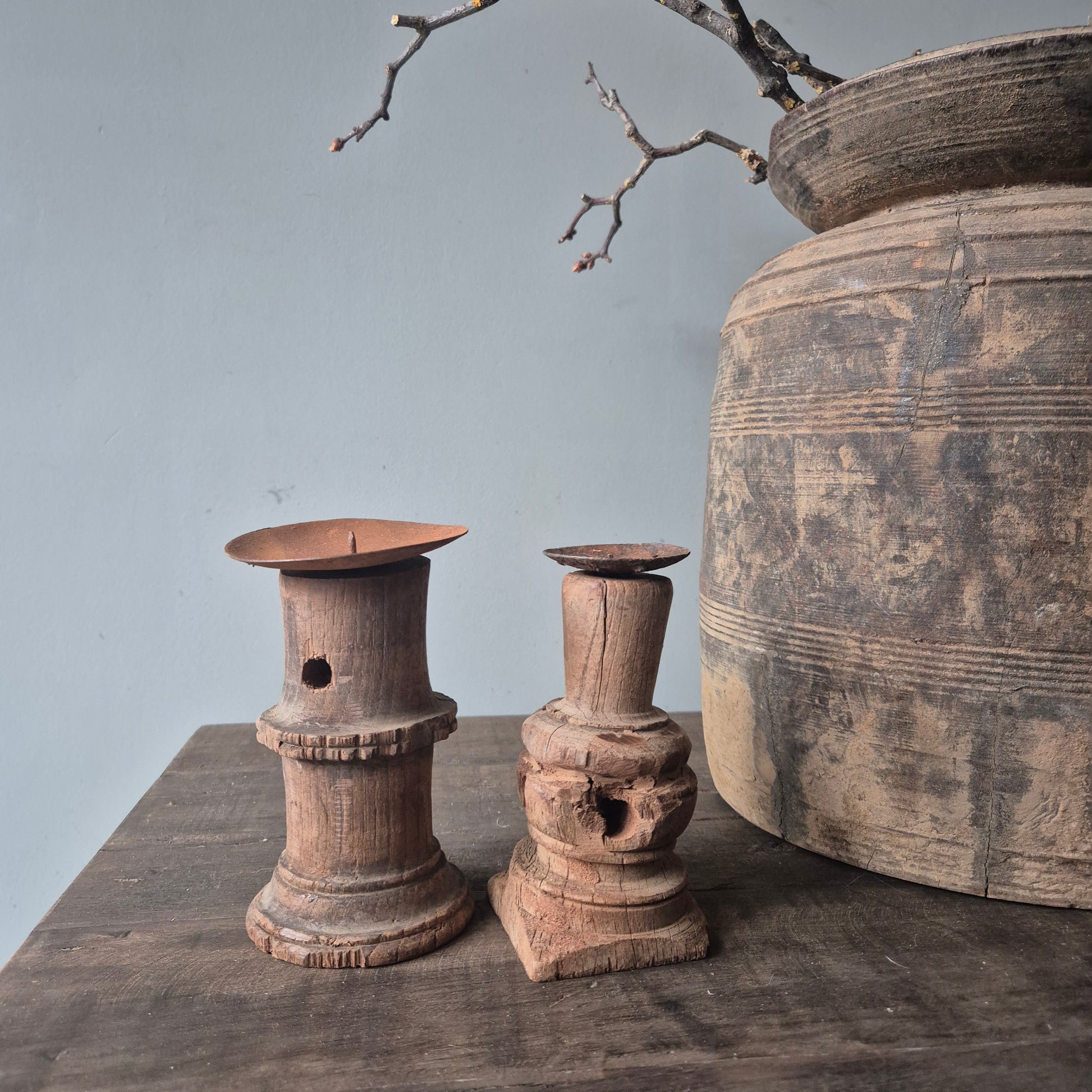 Een mooi oud houten kandelaar met unieke details. Past mooi binnen een stoer, sober en landelijk interieur!