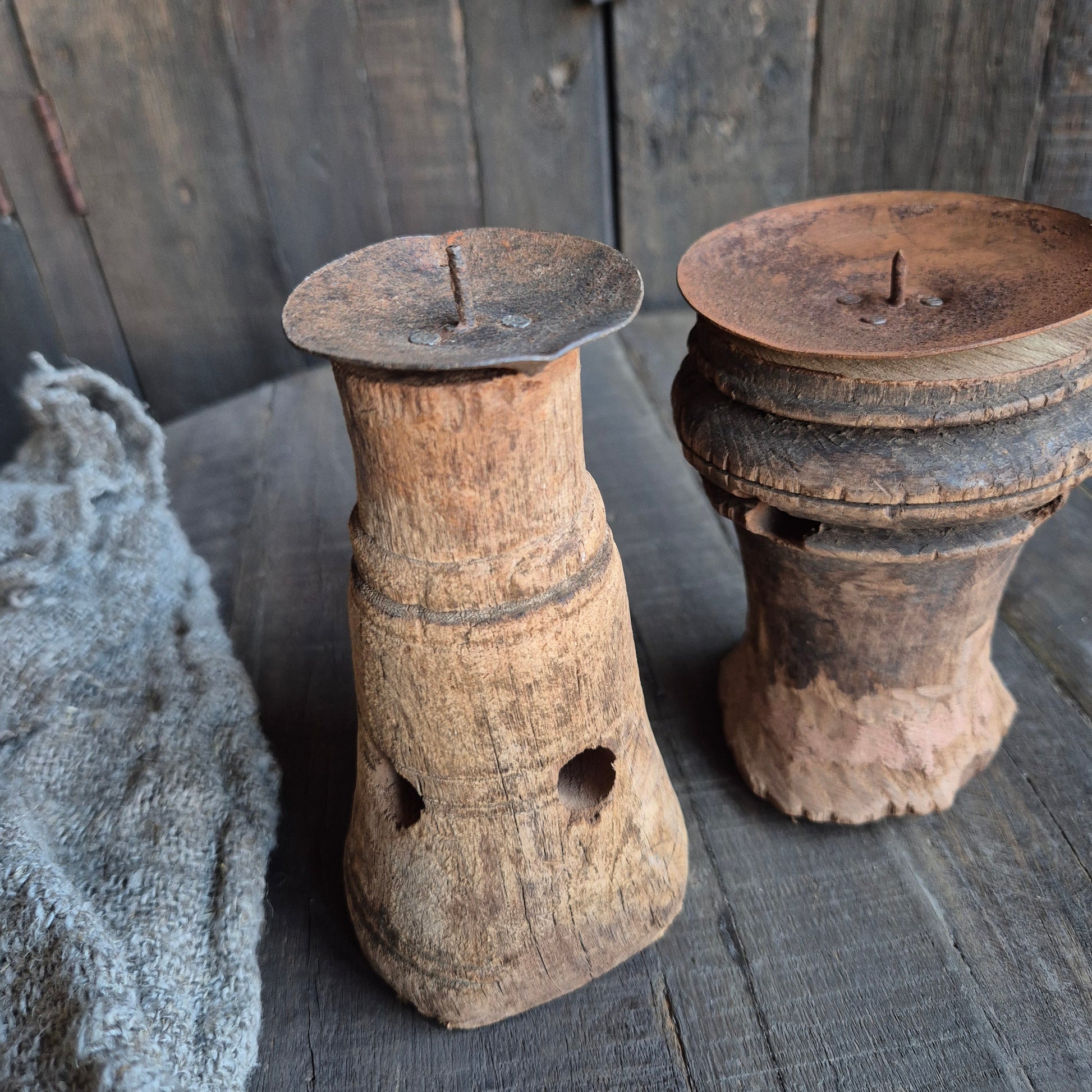 Een mooi oud houten kandelaar met unieke details. Past mooi binnen een stoer, sober en landelijk interieur!