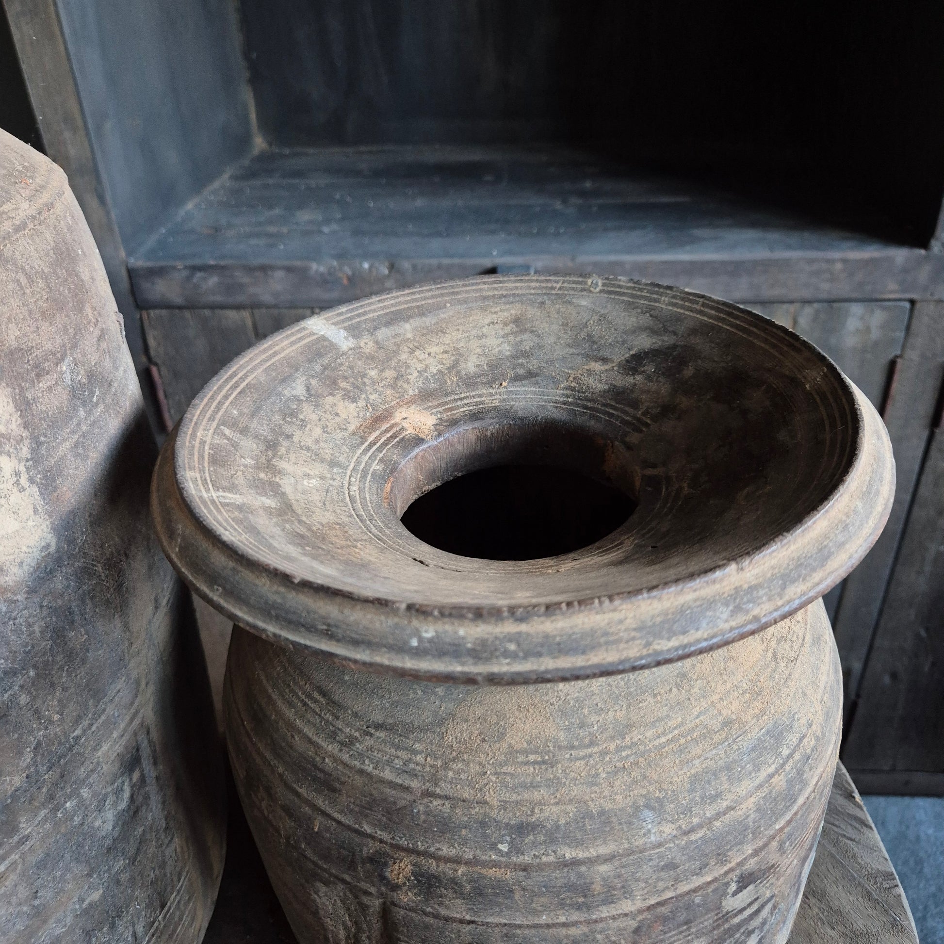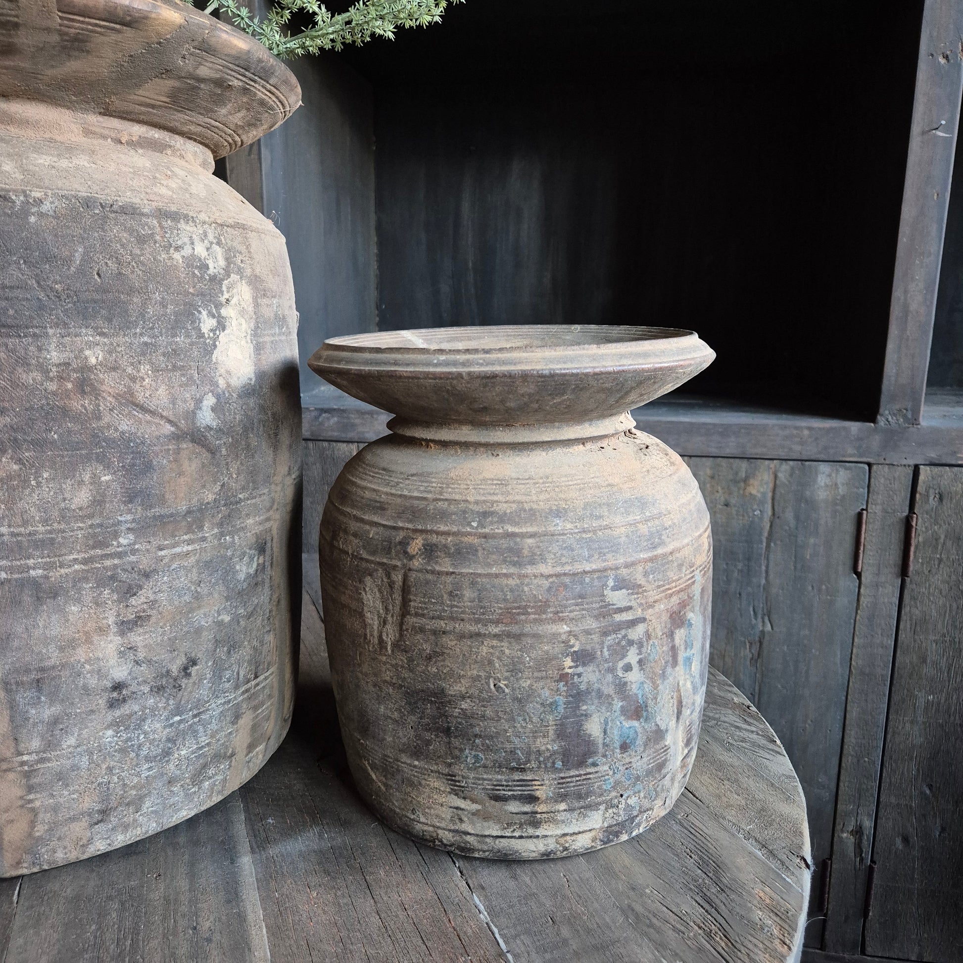 Een prachtig oud houten Nepalese kruik. Staat mooi binnen een stoer, sober en landelijk interieur!