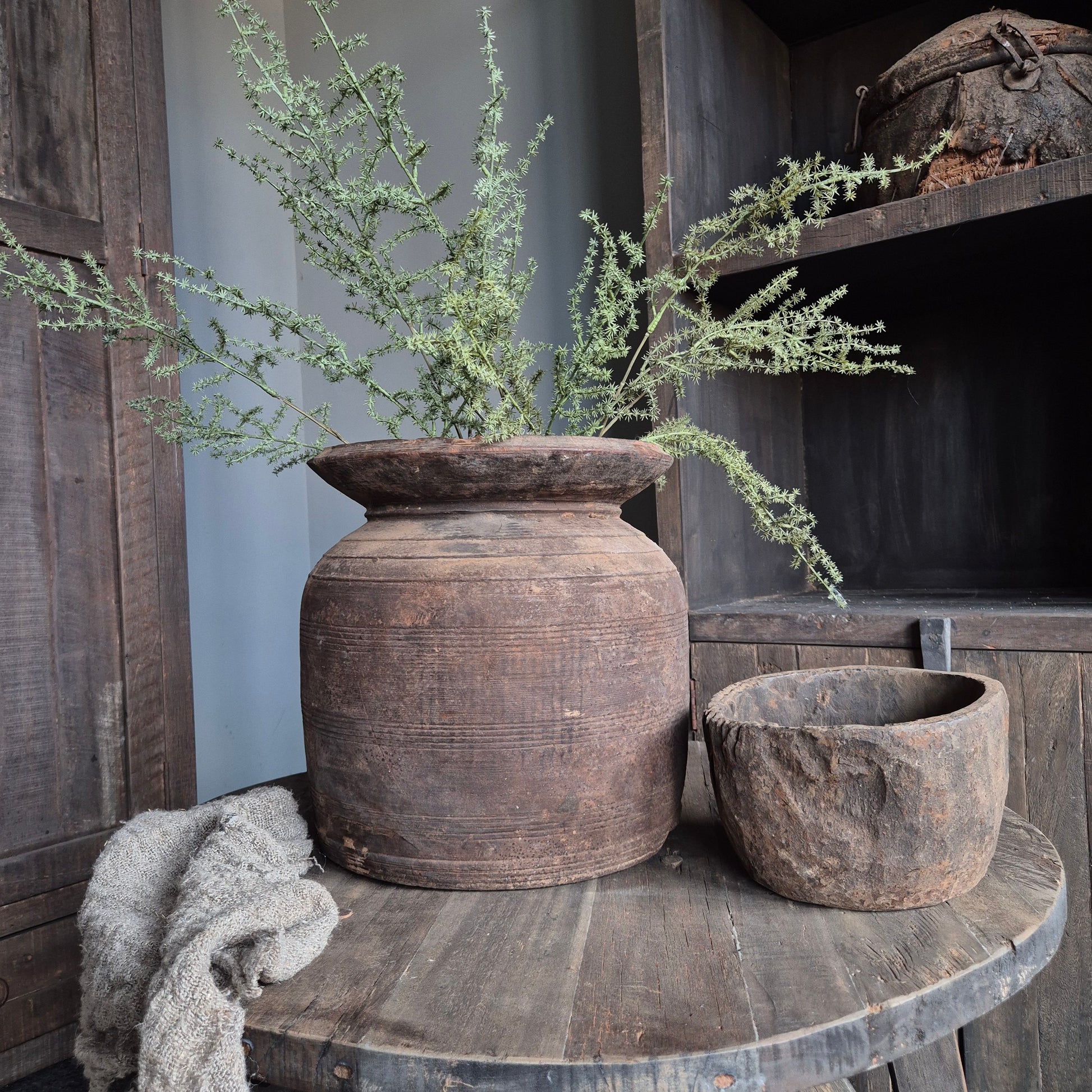 Een prachtig oud houten Nepalese kruik. Staat mooi binnen een stoer, sober en landelijk interieur!