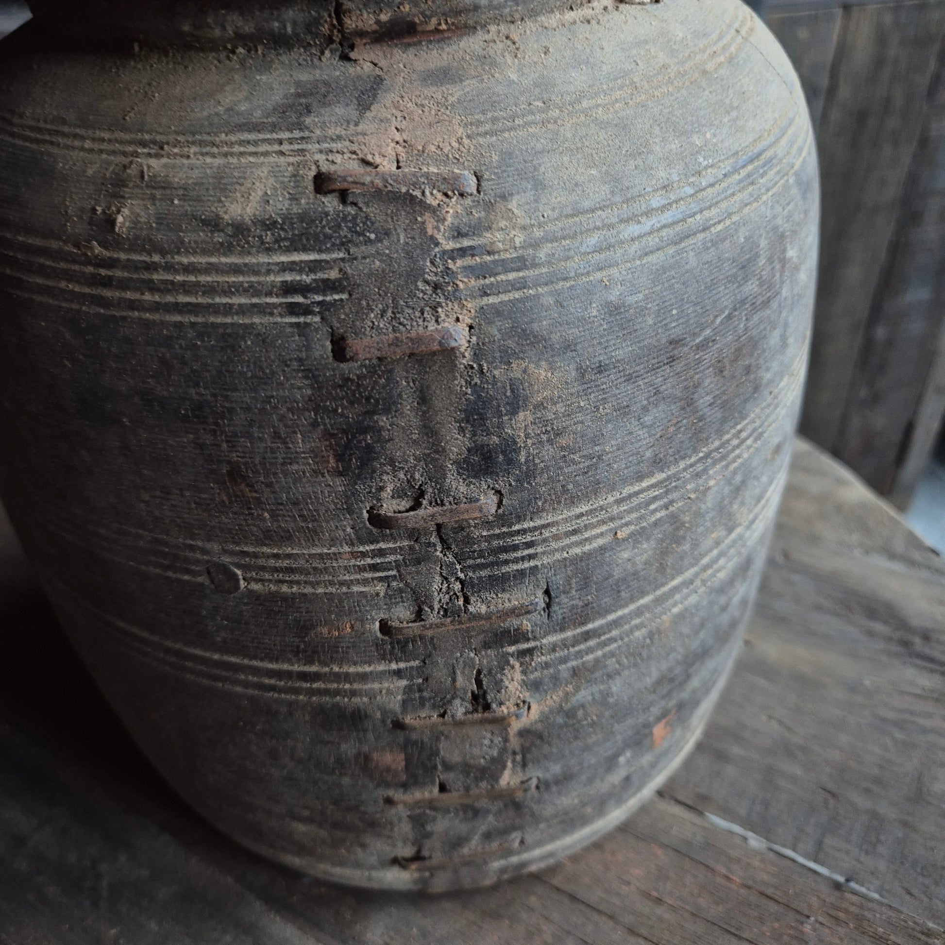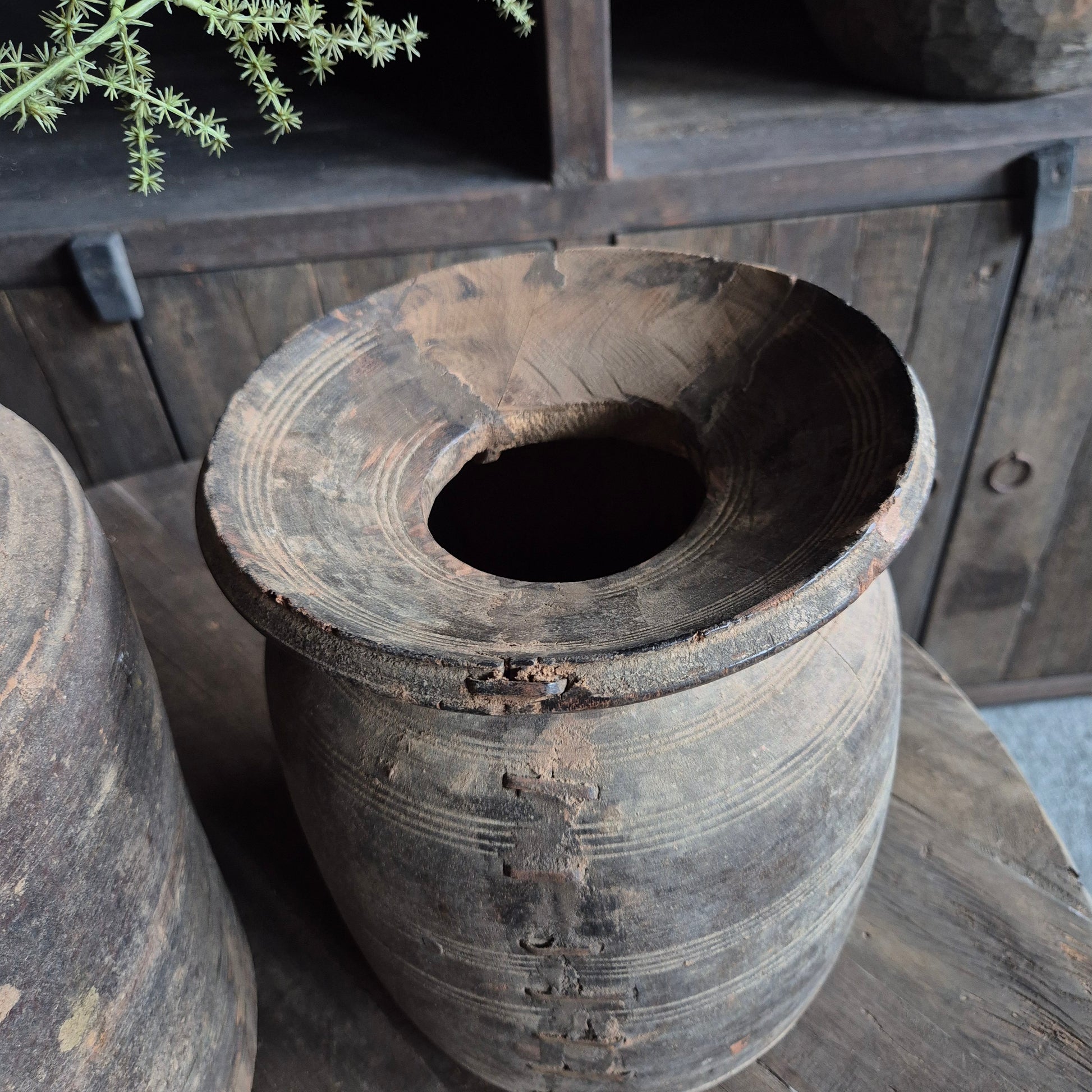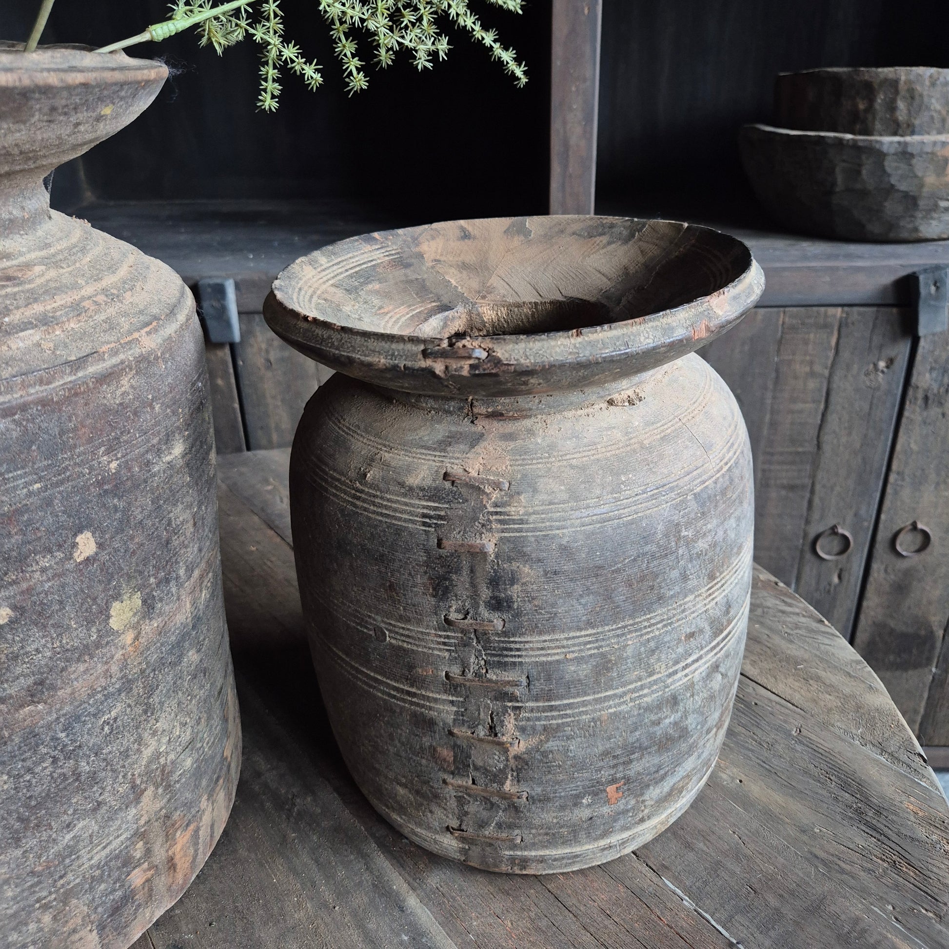Een prachtig oud houten Nepalese kruik. Staat mooi binnen een stoer, sober en landelijk interieur!