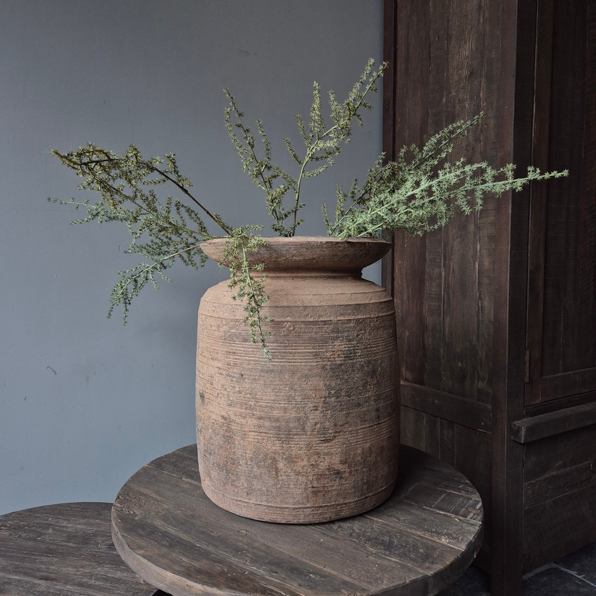 Een prachtig oud houten Nepalese kruik. Staat mooi binnen een stoer, sober en landelijk interieur!