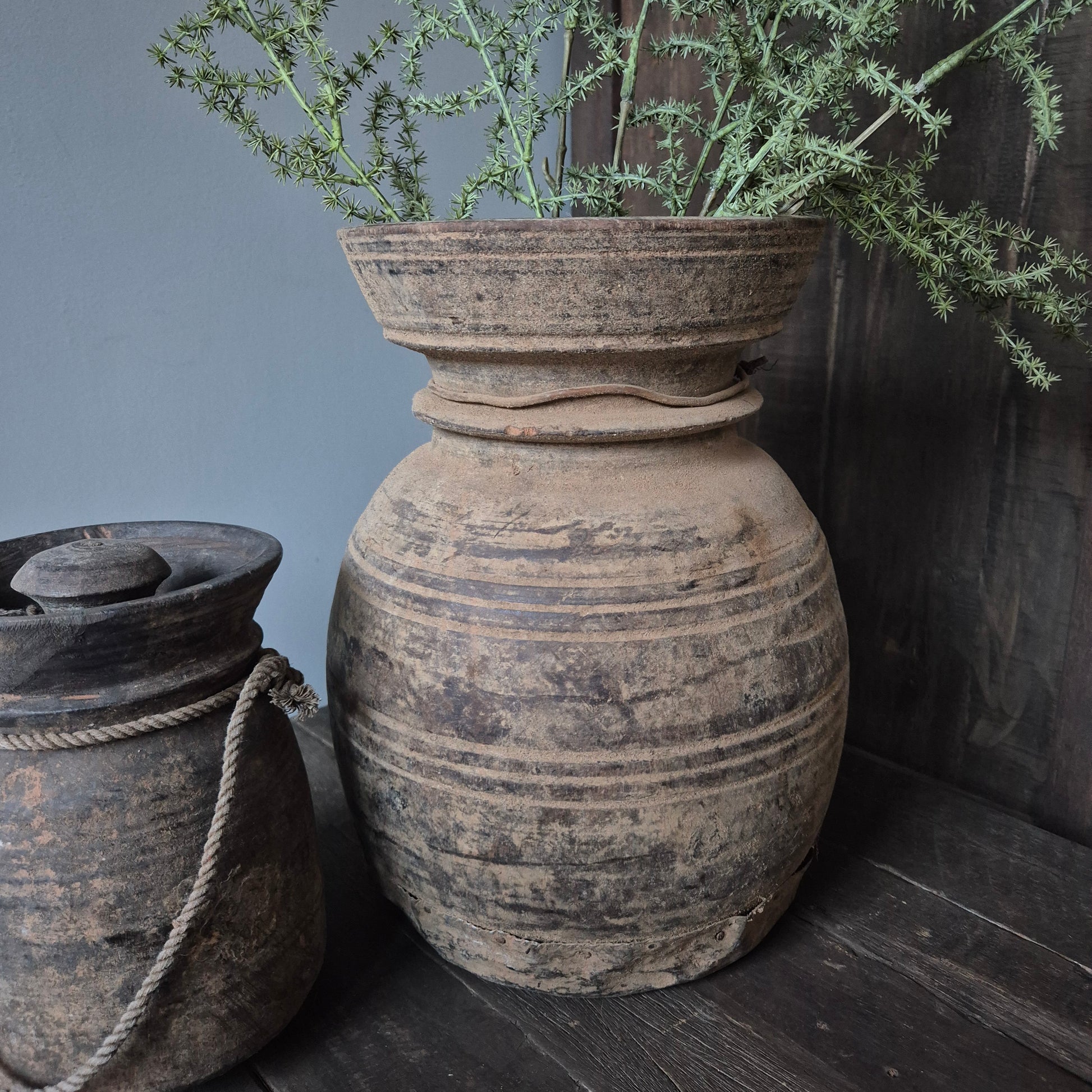 Een prachtig oud houten Nepalese kruik. Staat mooi binnen een stoer, sober en landelijk interieur!