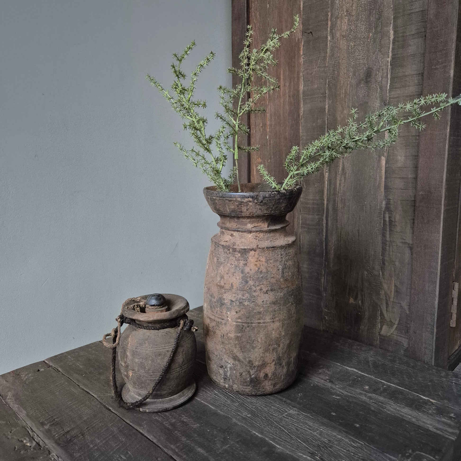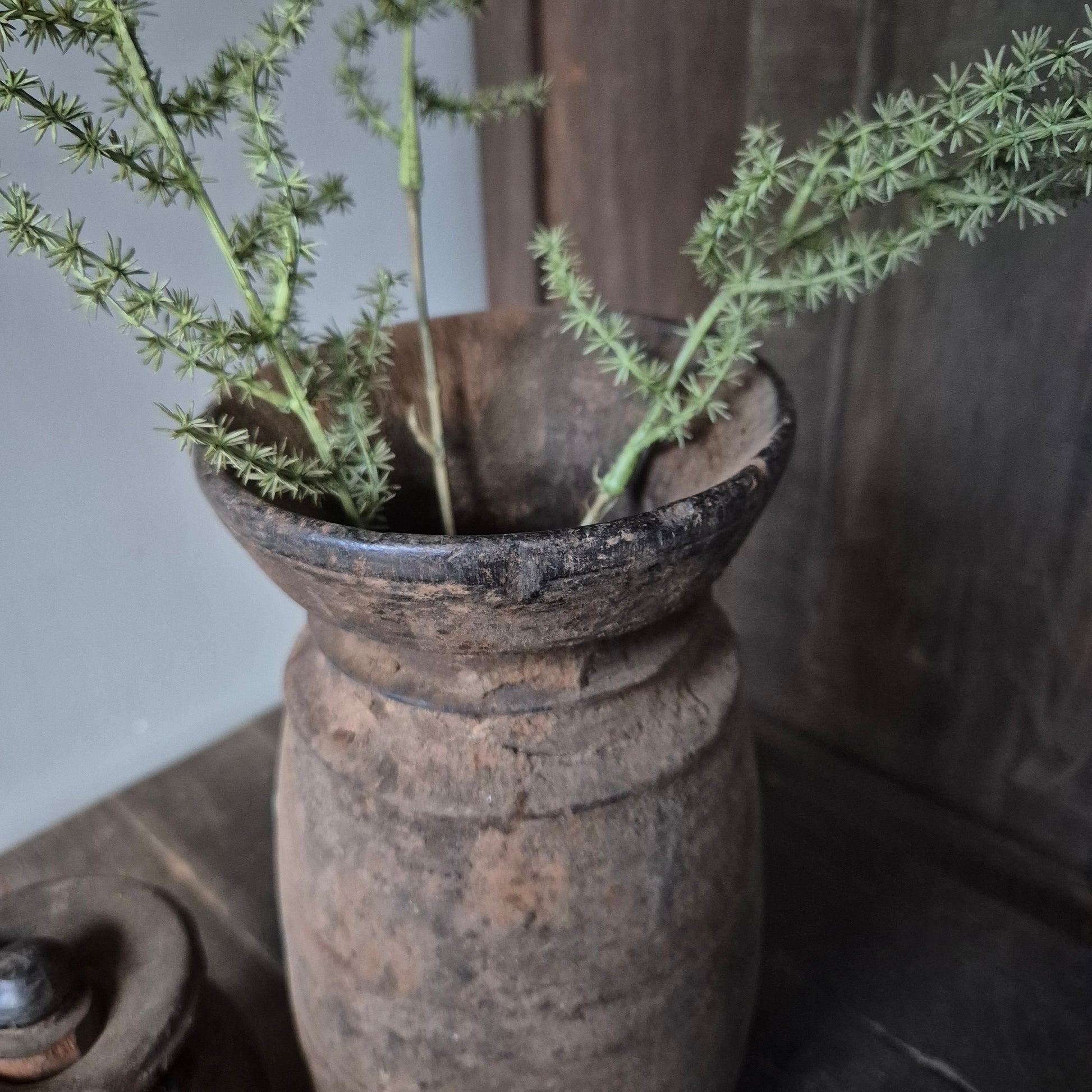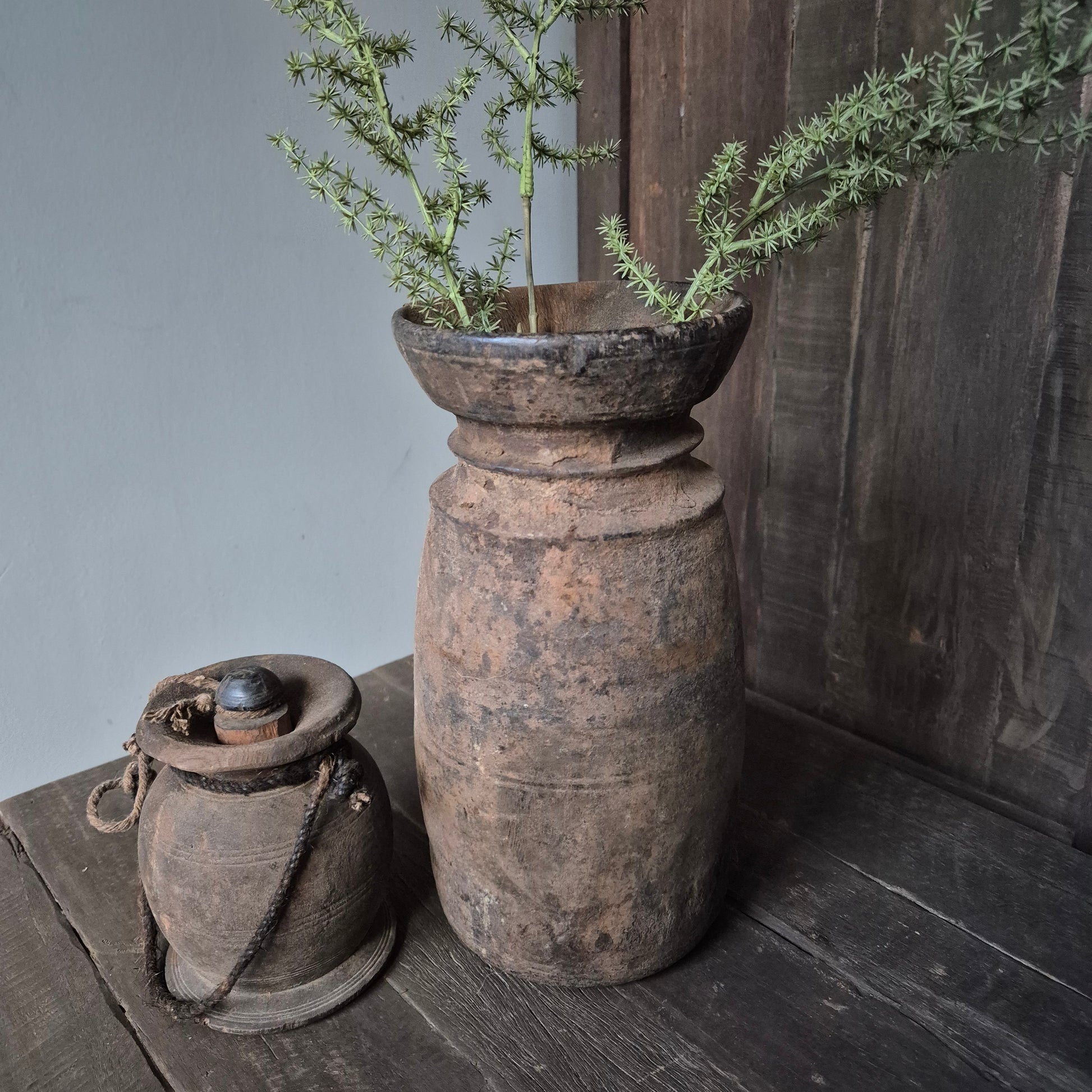 Een prachtig oud houten Nepalese kruik. Staat mooi binnen een stoer, sober en landelijk interieur!