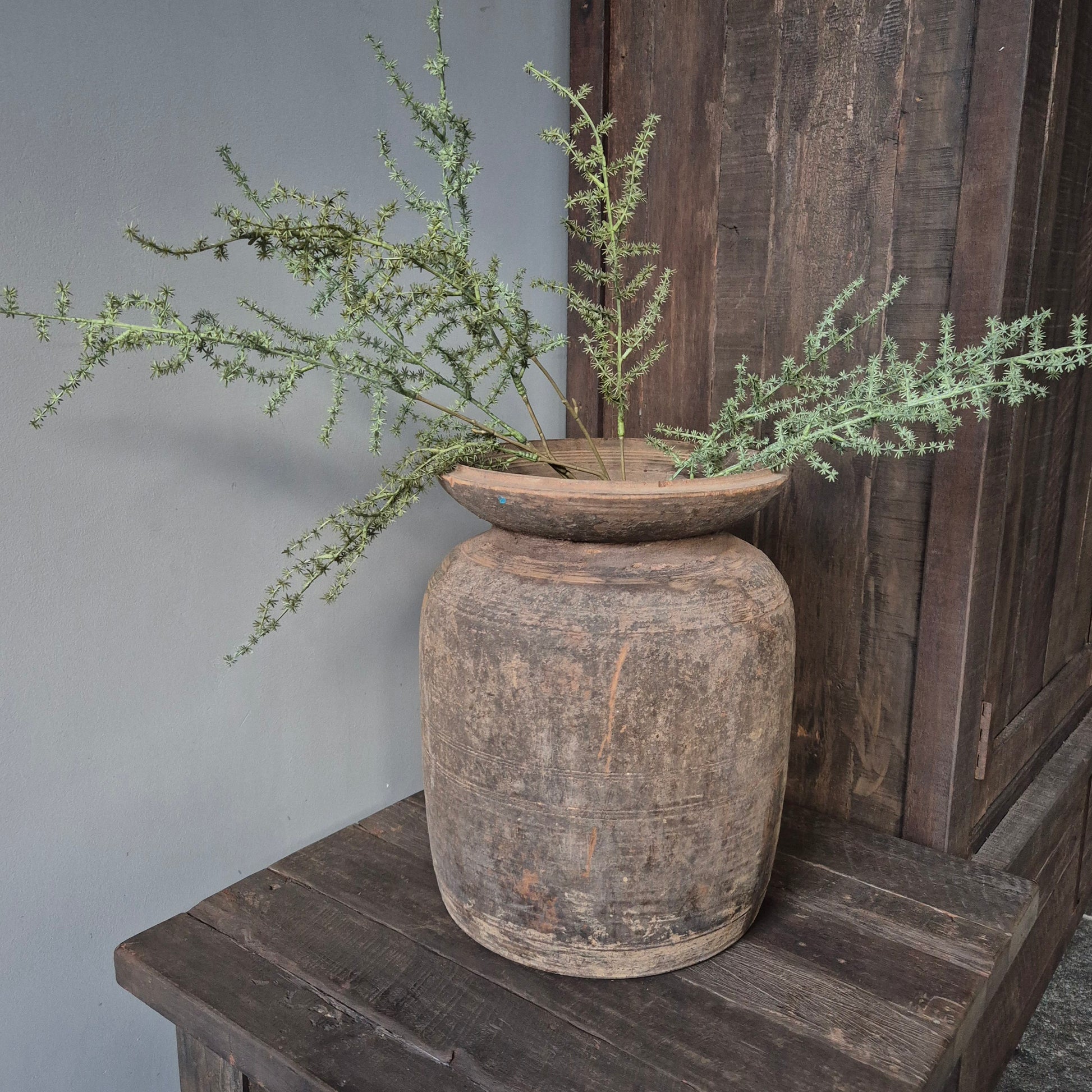 Een prachtig oud houten Nepalese kruik. Staat mooi binnen een stoer, sober en landelijk interieur!