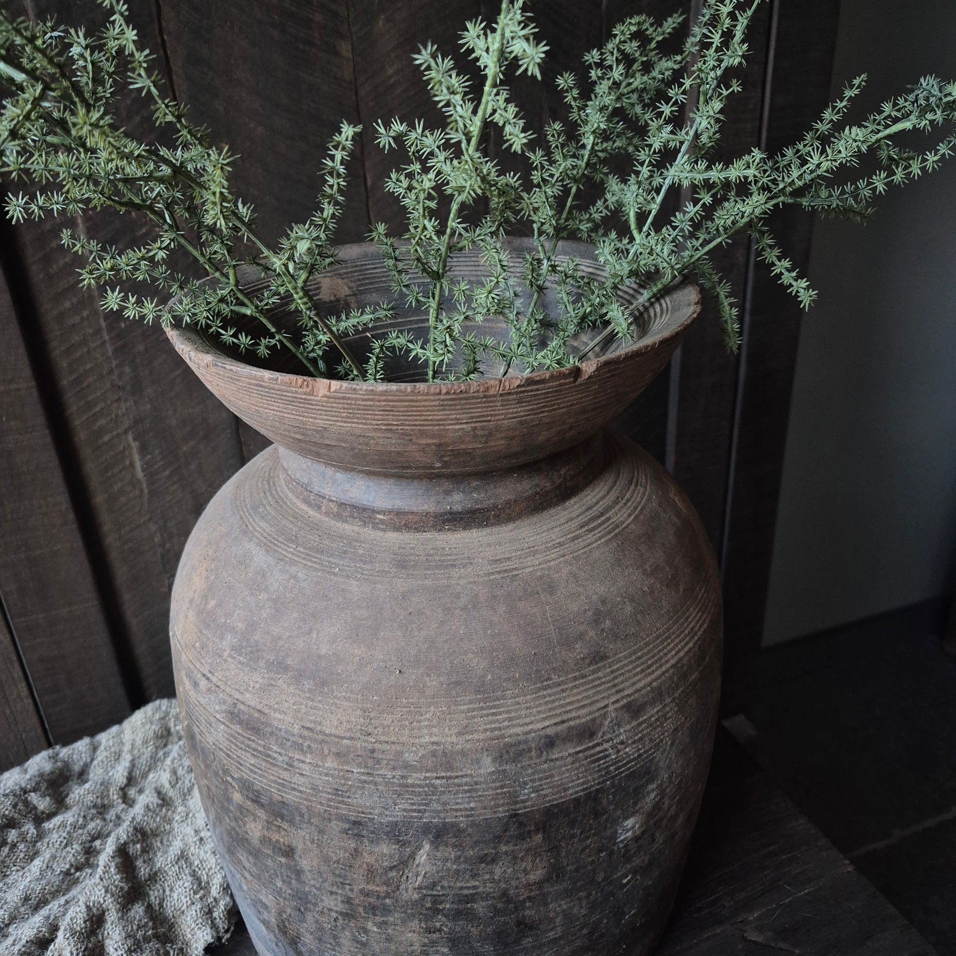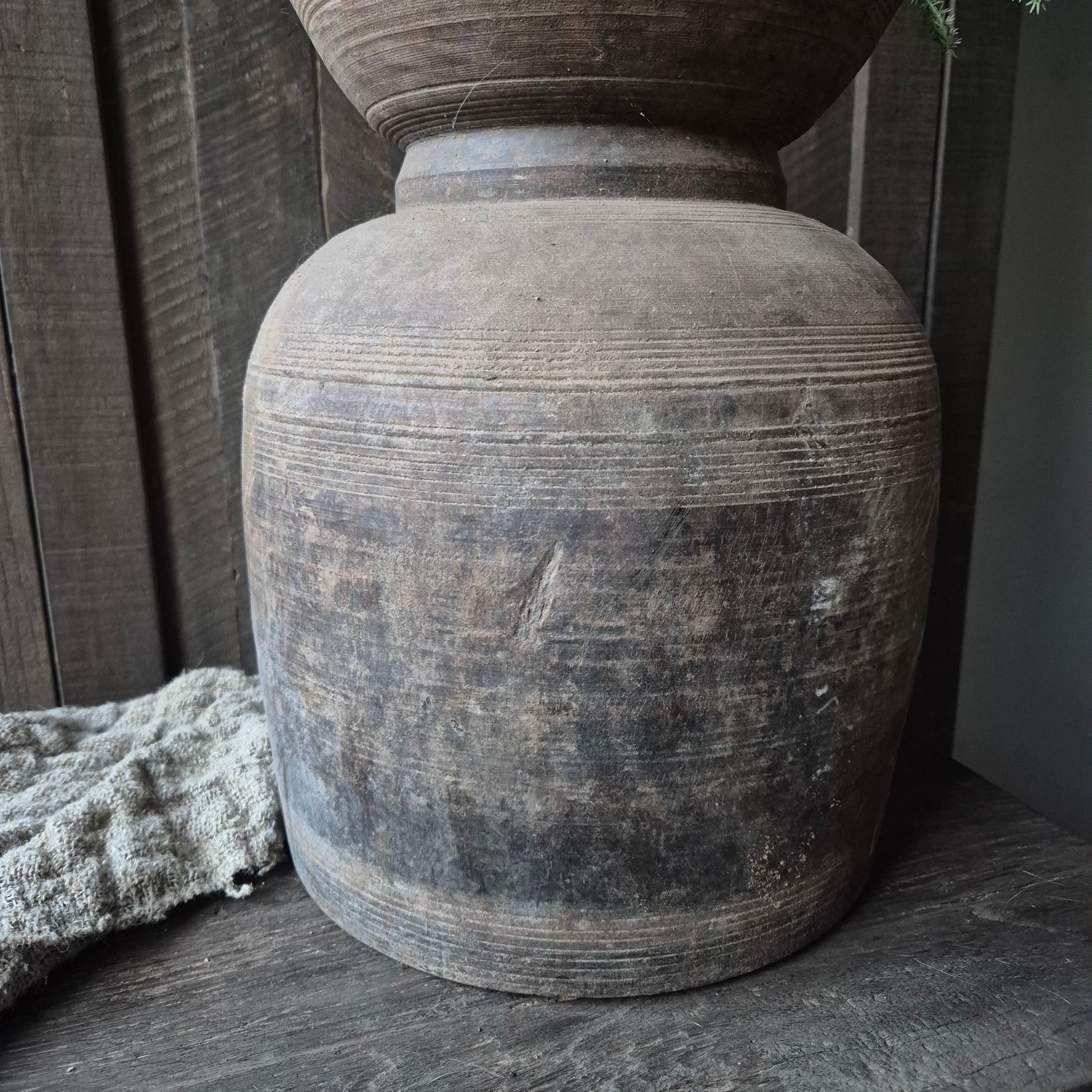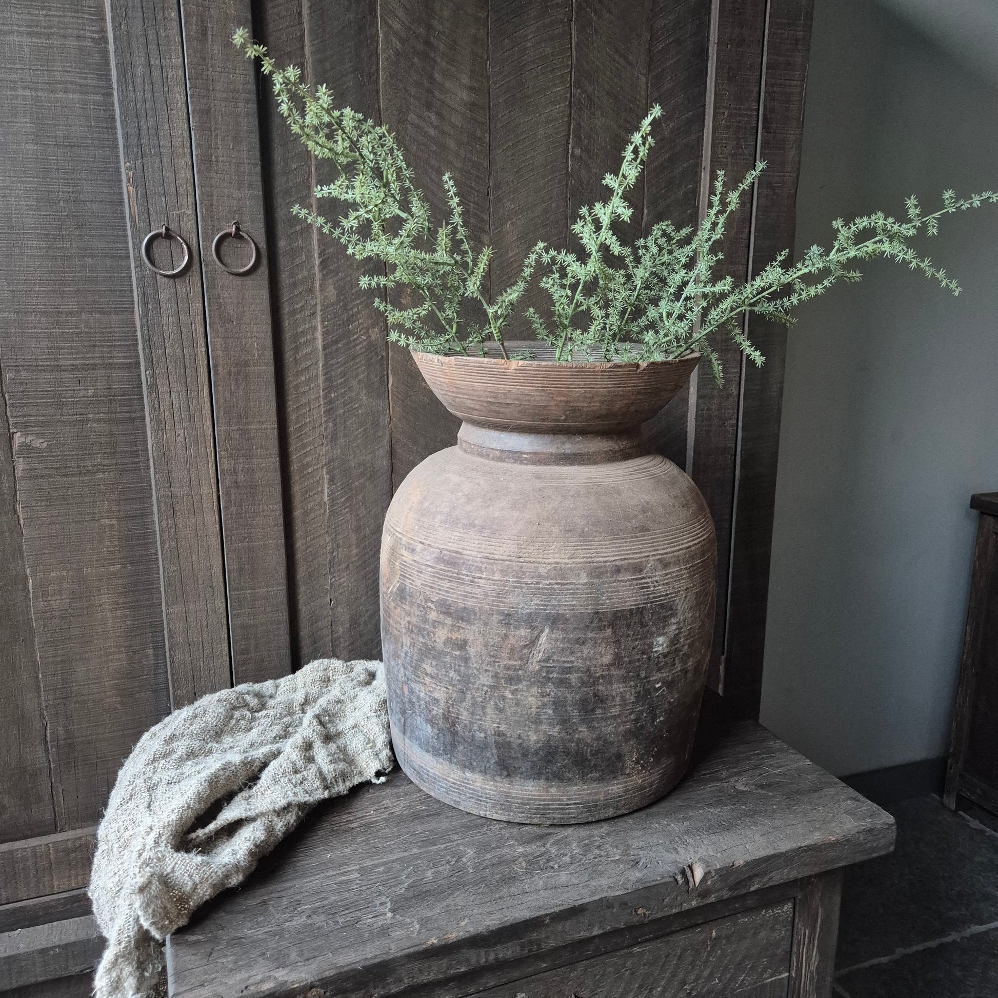 Een prachtig oud houten Nepalese kruik. Staat mooi binnen een stoer, sober en landelijk interieur!