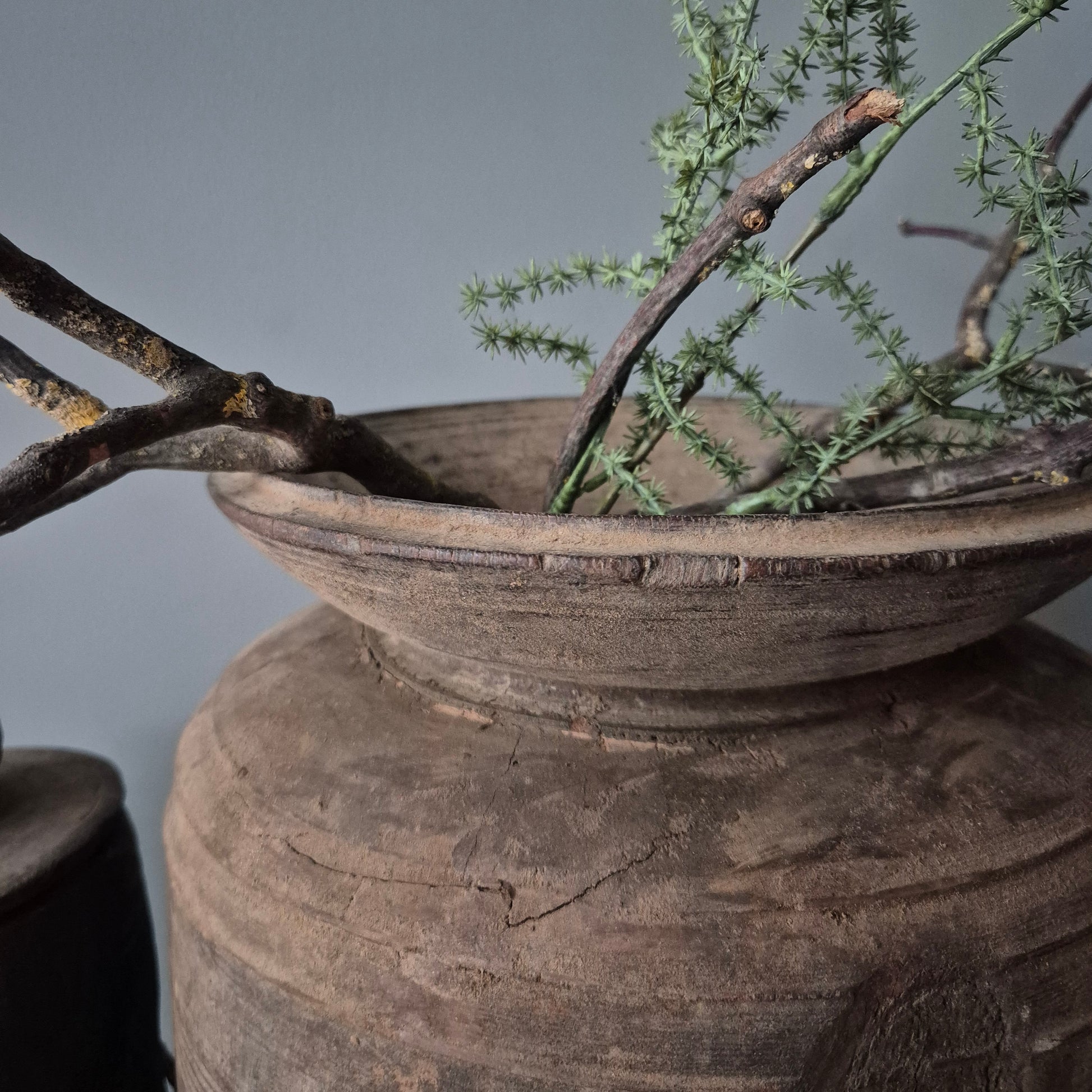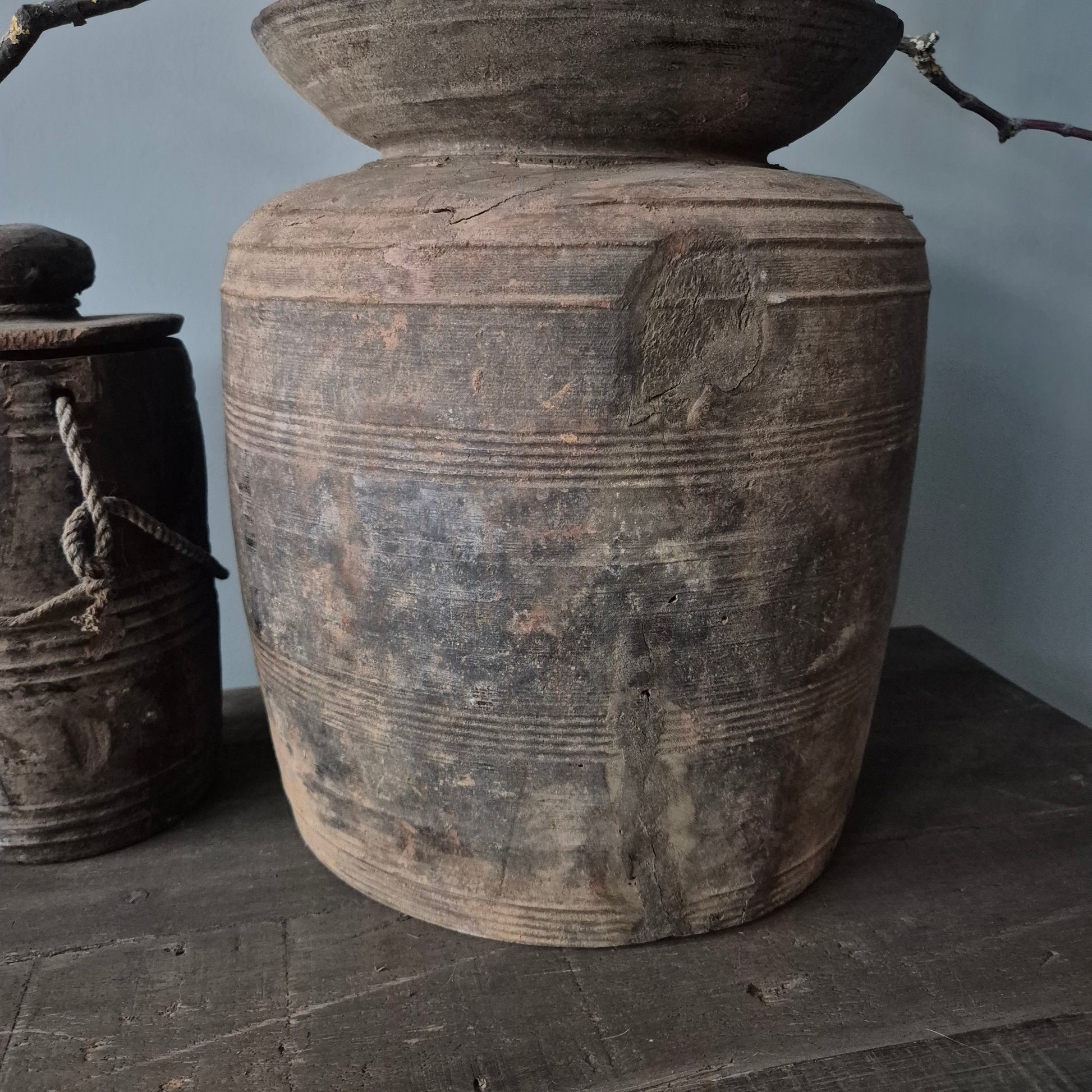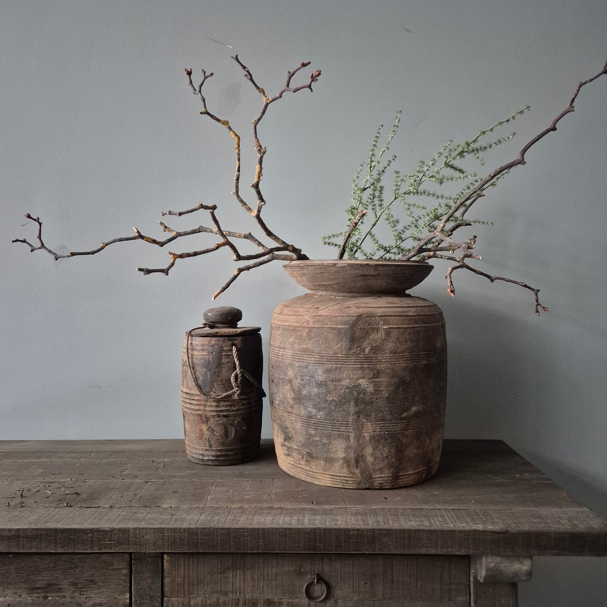Een prachtig oud houten Nepalese kruik. Staat mooi binnen een stoer, sober en landelijk interieur!