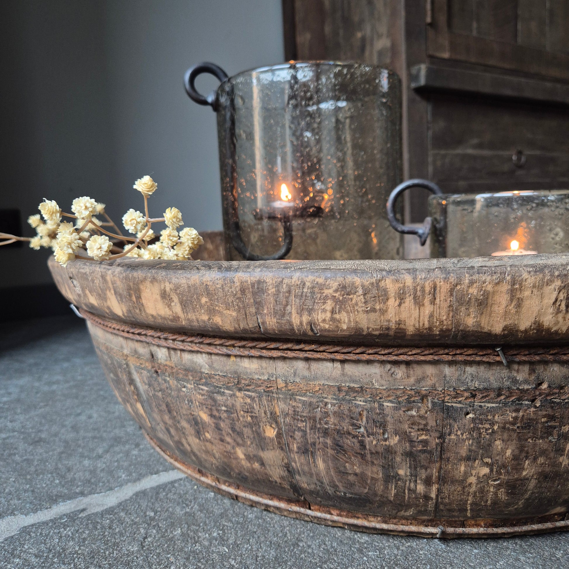Een prachtig oud houten olijfbak in XL uitvoering. Deze olijfbak staat prachtig op de eettafel binnen een stoer sober en landelijk interieur! Combineer de olijfbak met een aantal mooie houten potten of glazen windlichten.