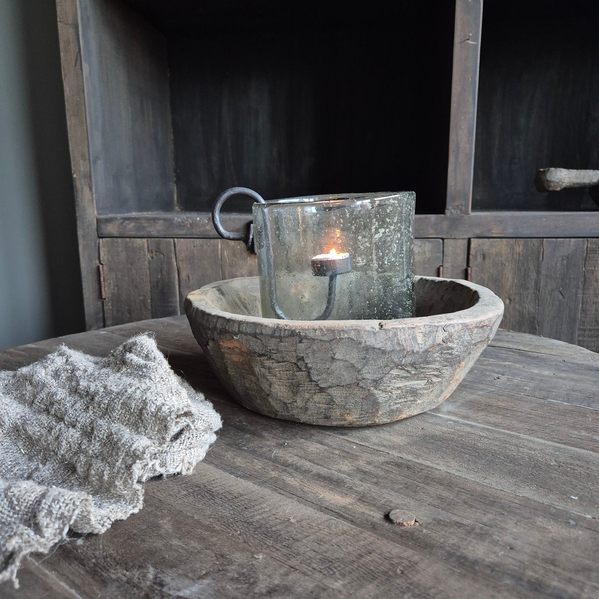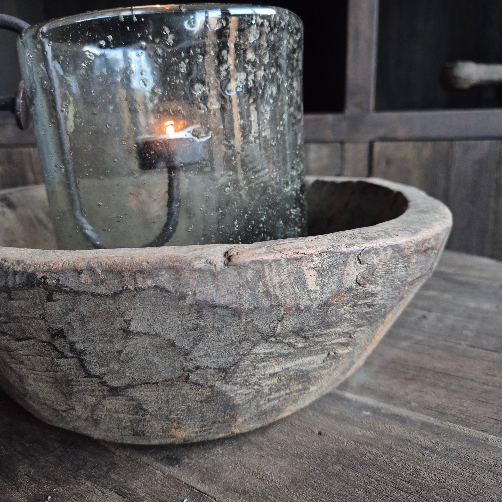 Een prachtig oud houten schaal. Deze schaal staat erg mooi op de eettafel met een krans of windlicht erin. Een pronkstuk binnen een stoer, sober en landelijk interieur.