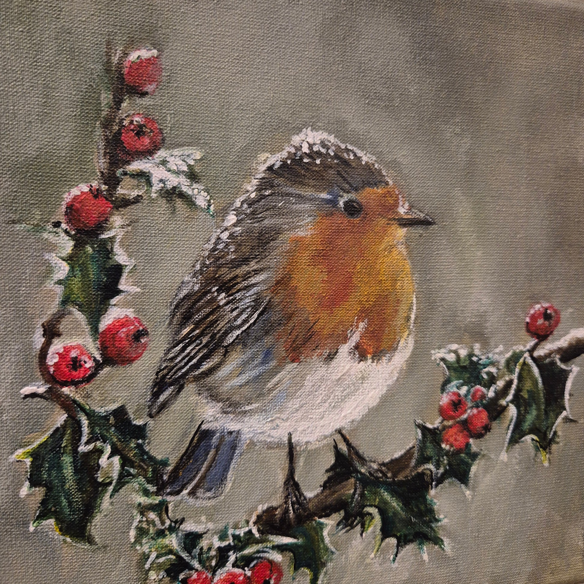 Stoer & sober schilderij Roodborstje handgeschilderd