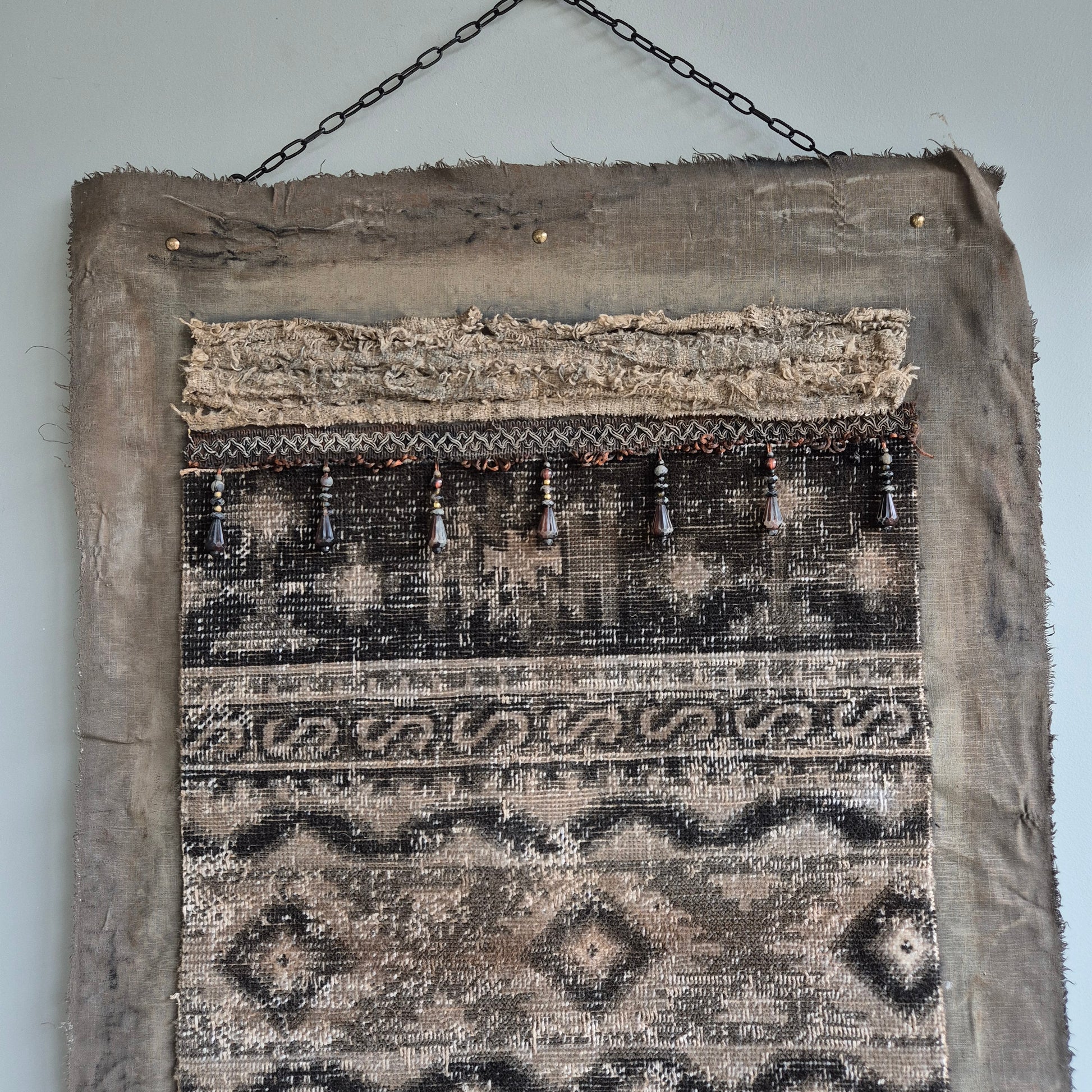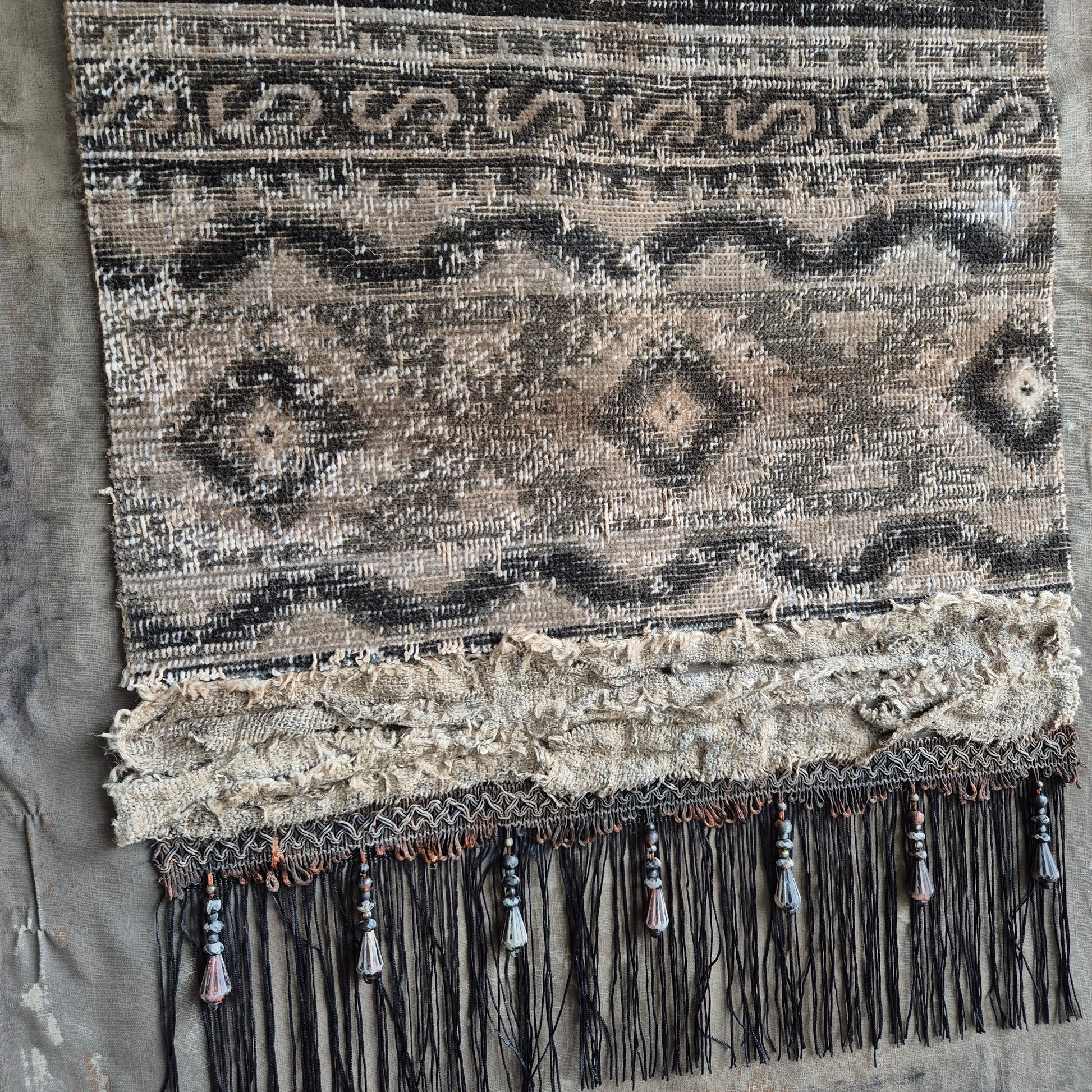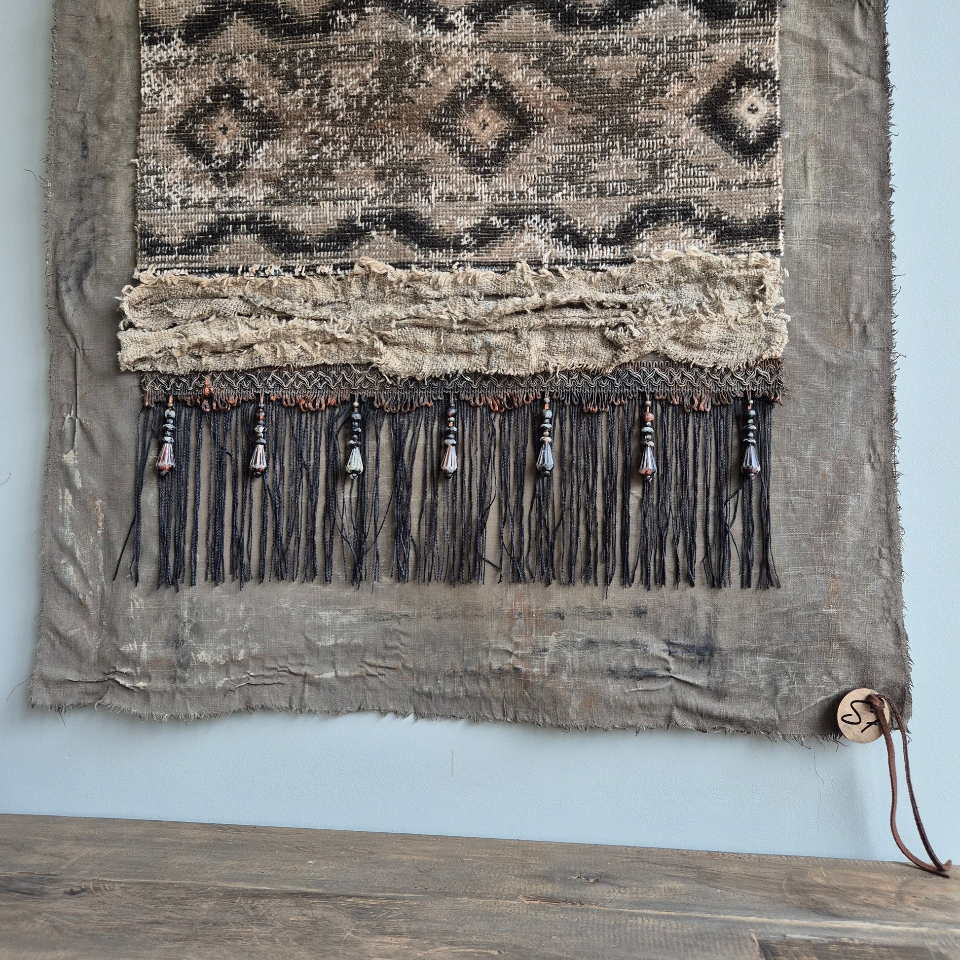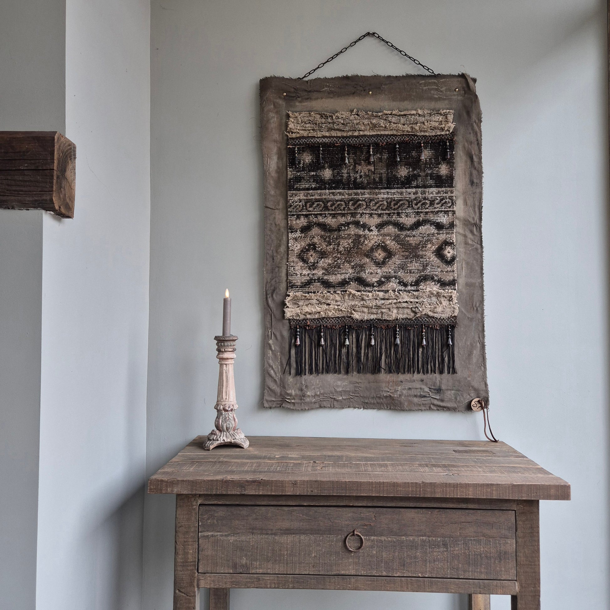 Een prachtig en uniek wand | kalkdoek gemaakt door San7. Een pronkstuk voor aan de muur binnen een stoer, sober en landelijk interieur!