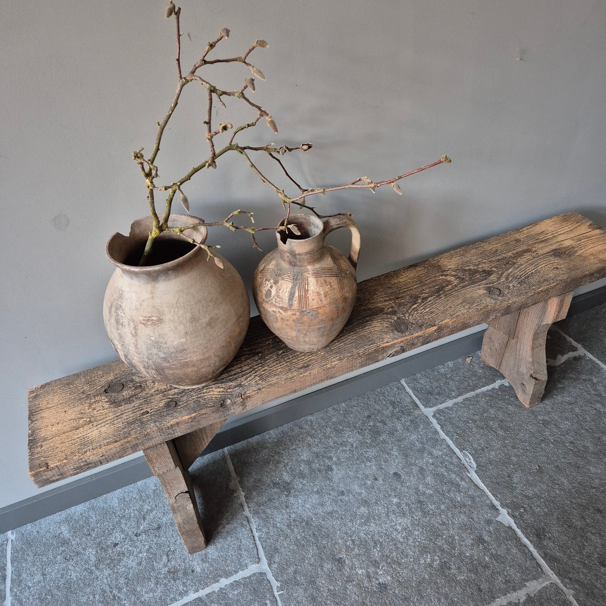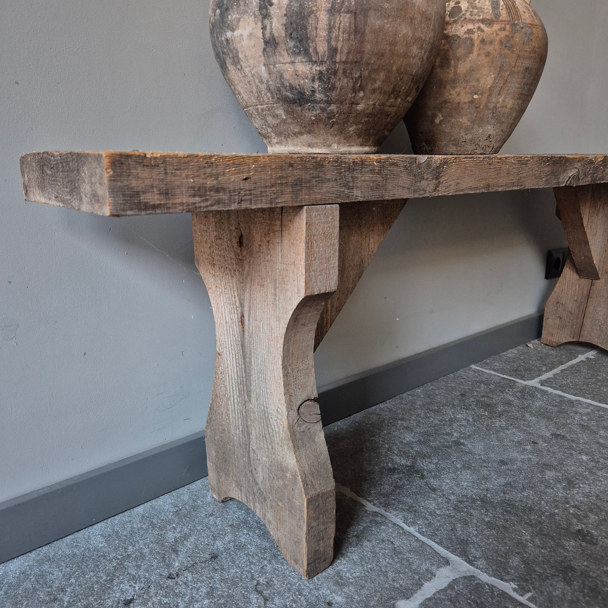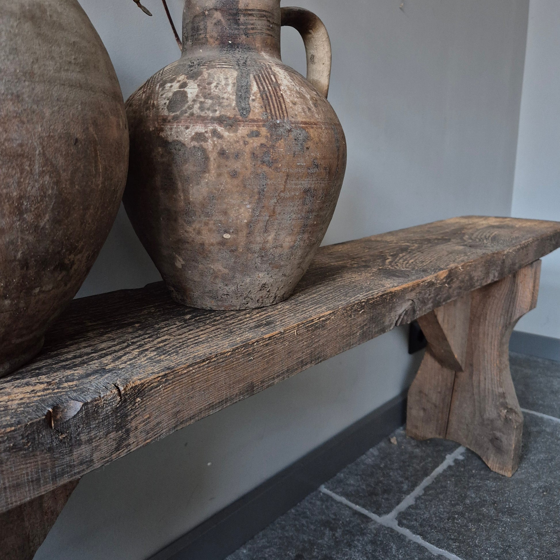 Een prachtig oud houten bankje. Een mooi en authentiek item binnen een stoer, sober en landelijk interieur!