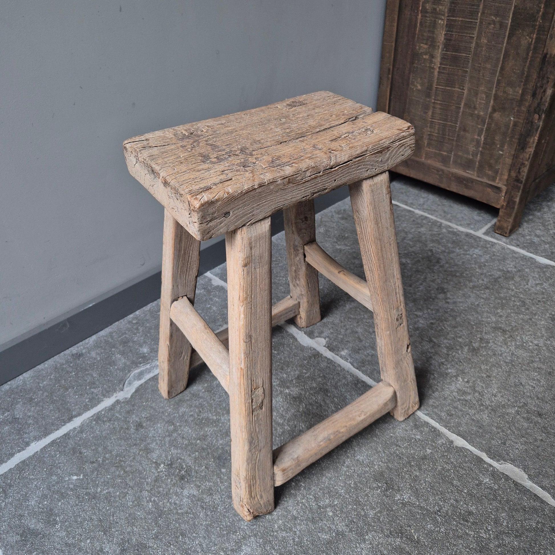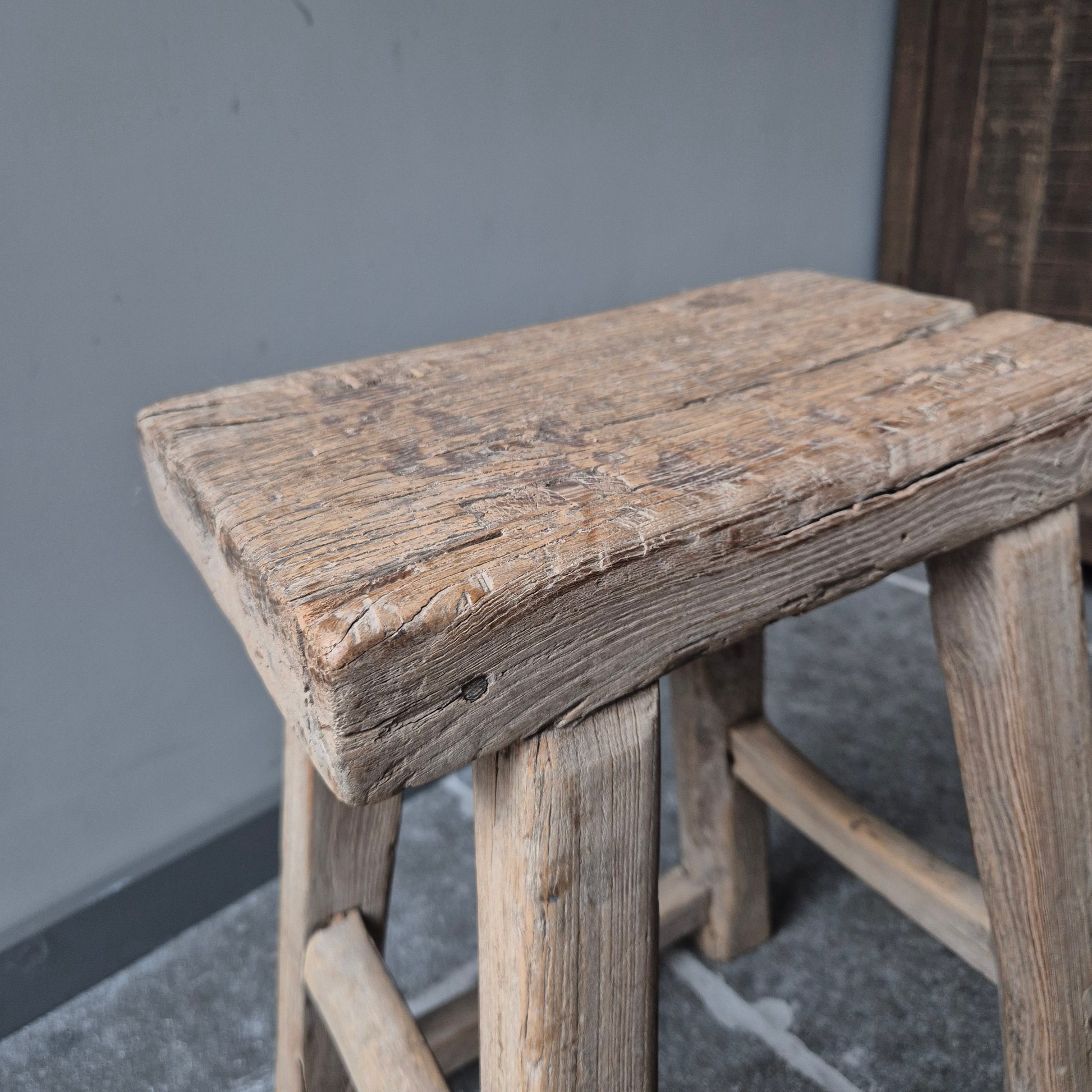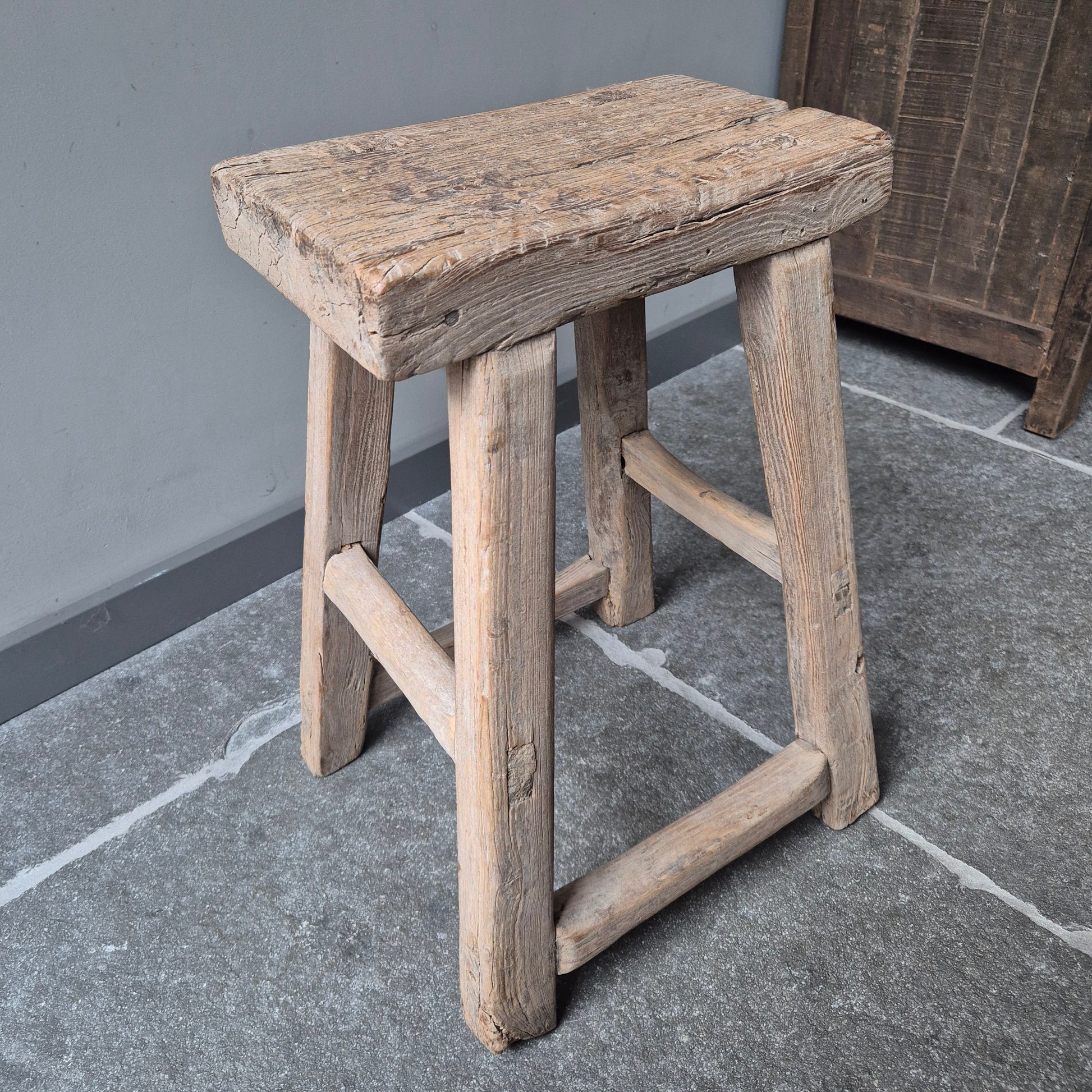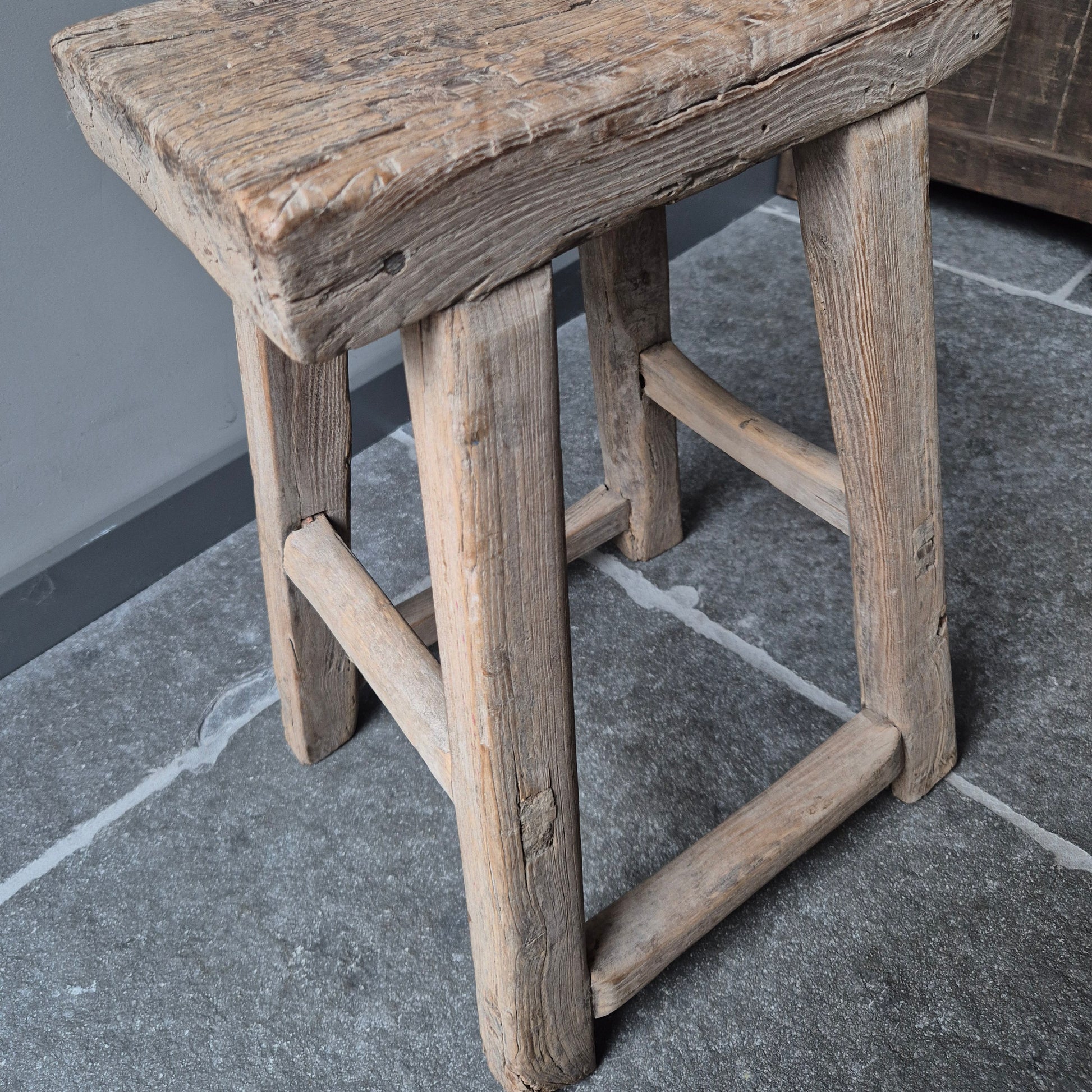 Een prachtig en uniek oud houten Chinese kruk/bankje. Erg leuk om te gebruiken als bijzettafeltje binnen een stoer, sober en landelijk interieur! Ieder bankje heeft zijn eigen authentieke details.