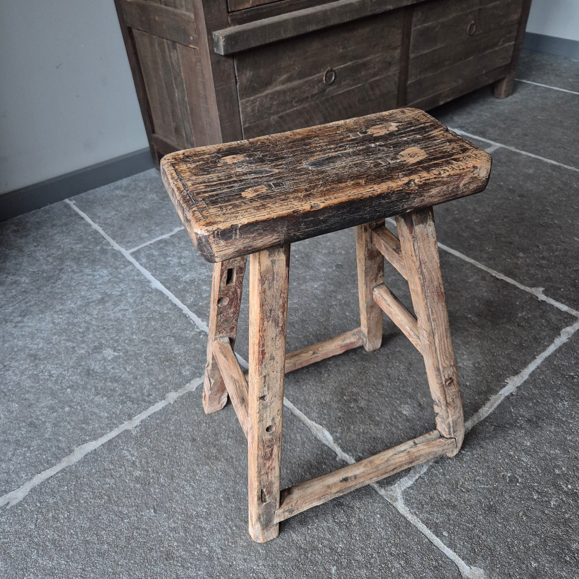 Een prachtig en uniek oud houten Chinese kruk/bankje. Erg leuk om te gebruiken als bijzettafeltje binnen een stoer, sober en landelijk interieur! Ieder bankje heeft zijn eigen authentieke details.