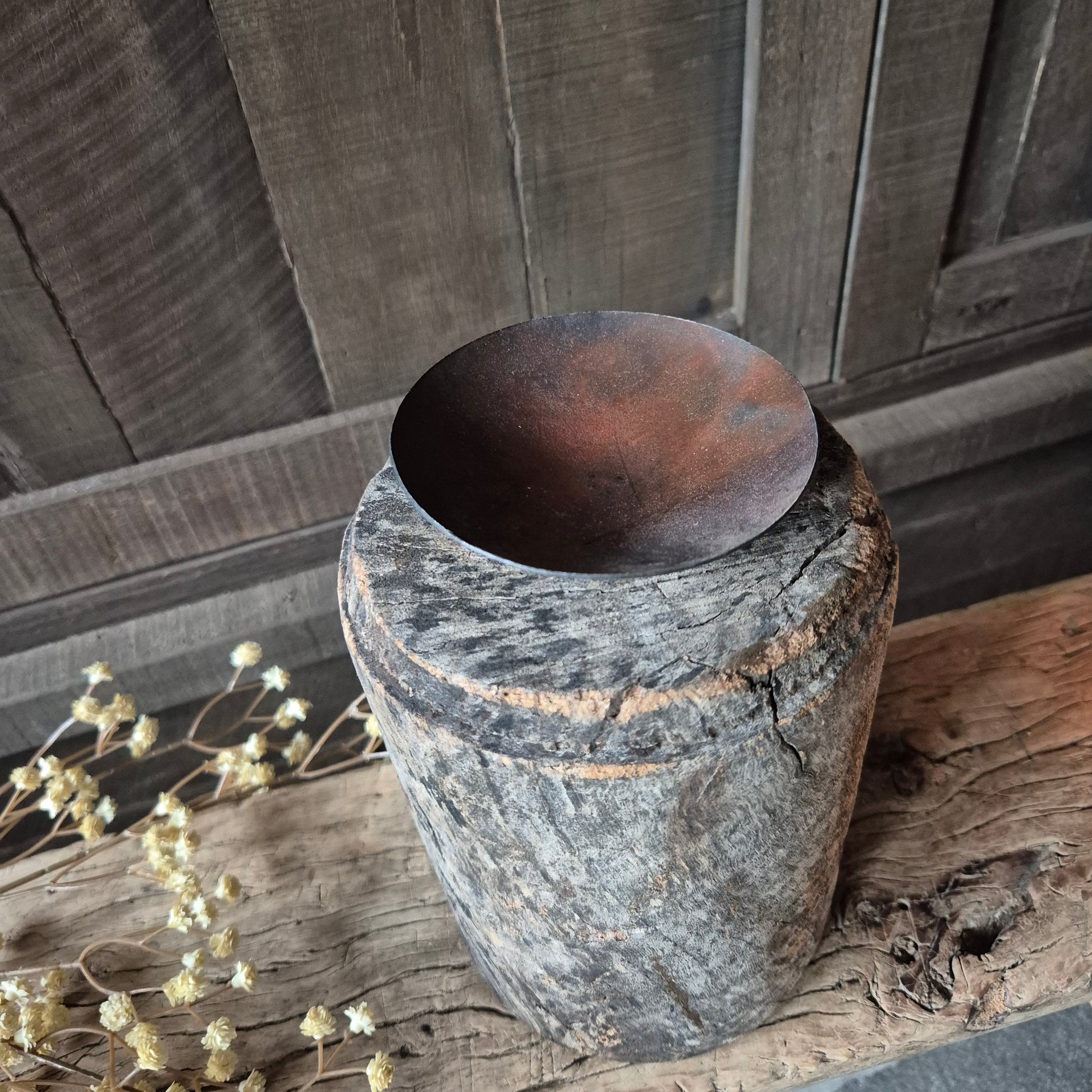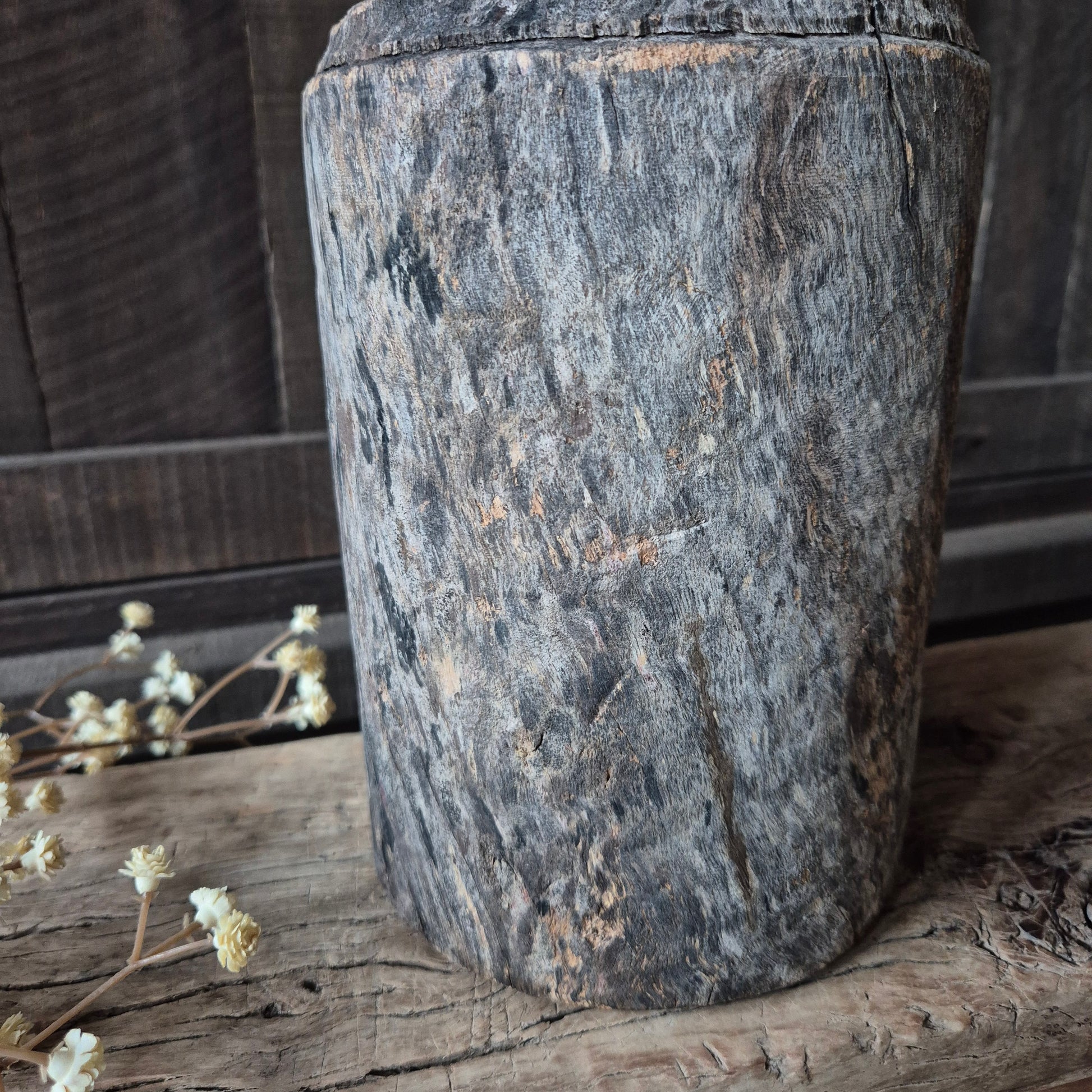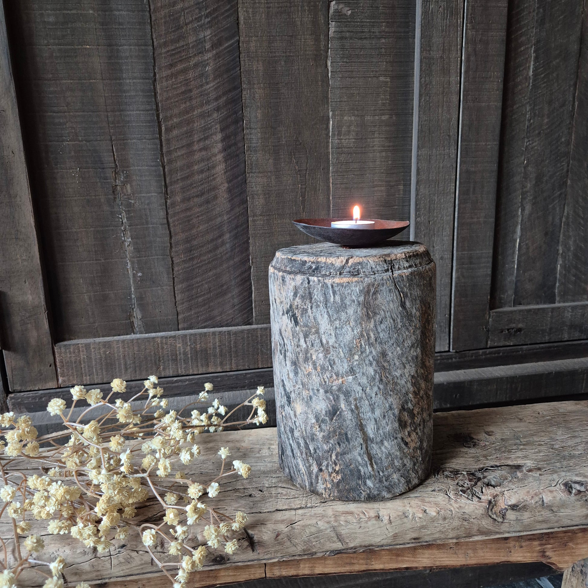 Een prachtig oud houten kandelaar. Mooi binnen een stoer, sober en landelijk interieur!