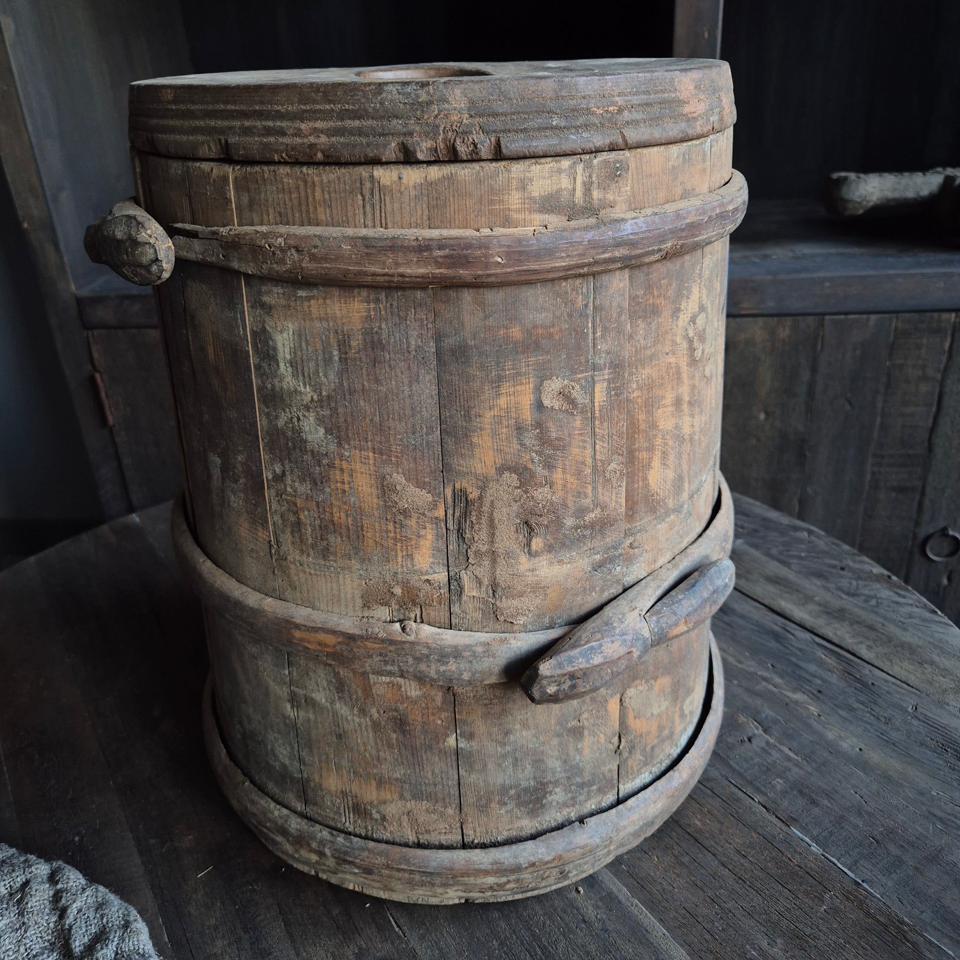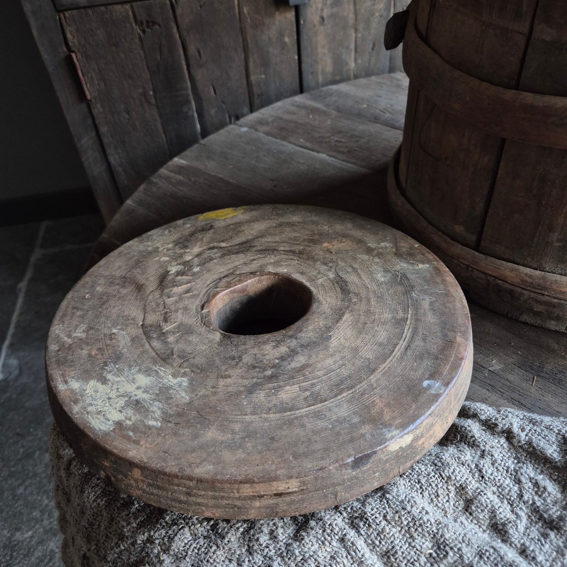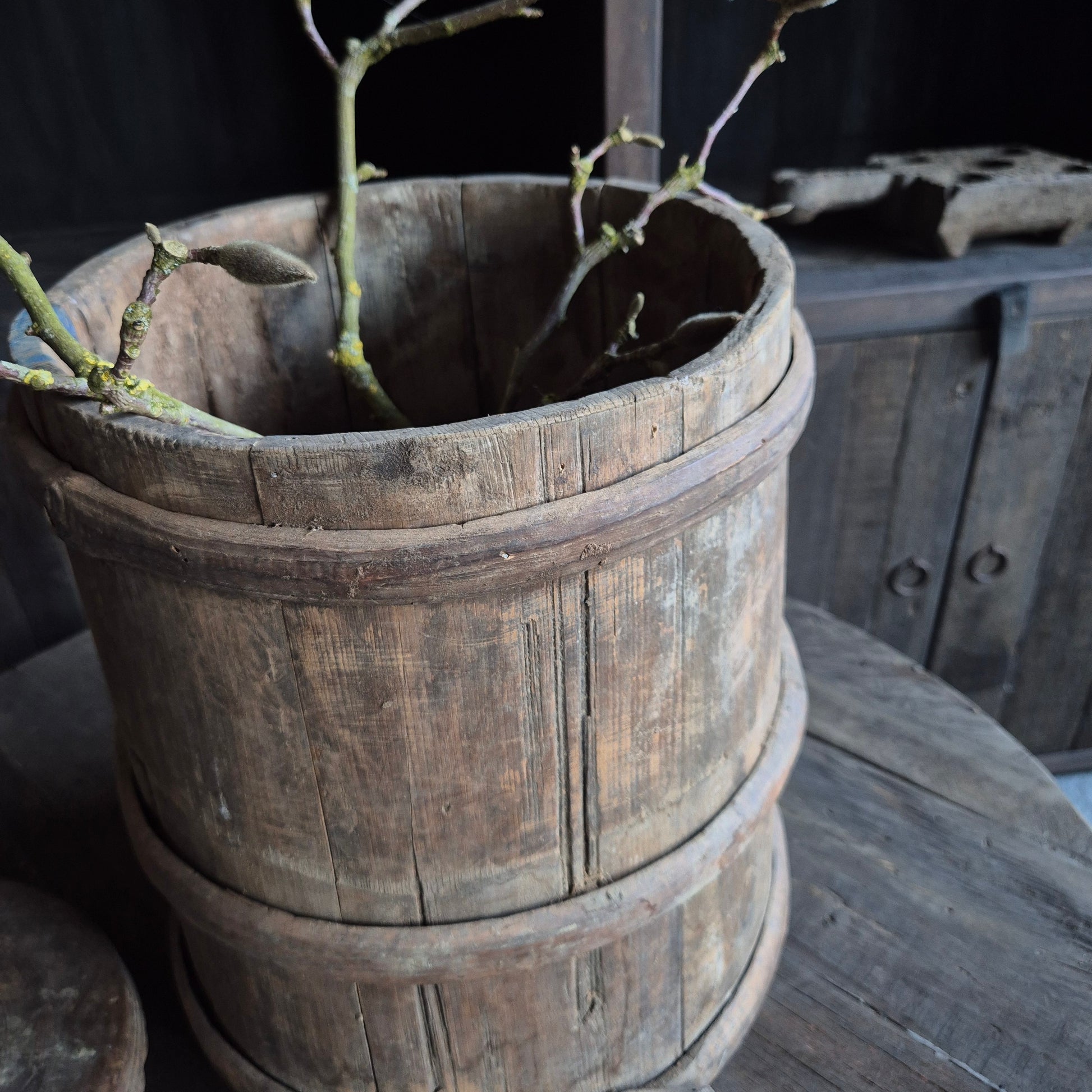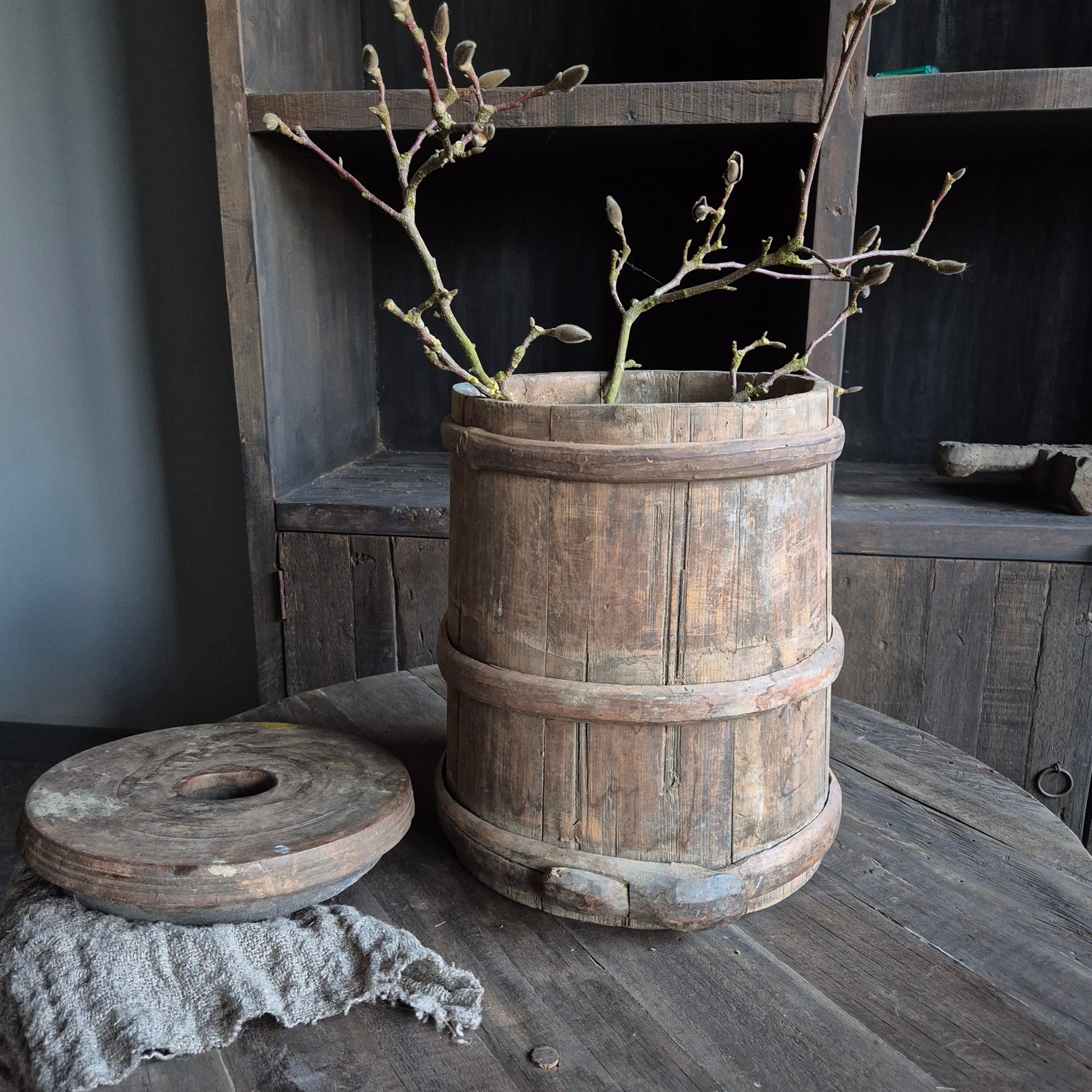 Een prachtig en uniek oud houten karnton kruik. Mooi binnen een stoer, sober en landelijk interieur!