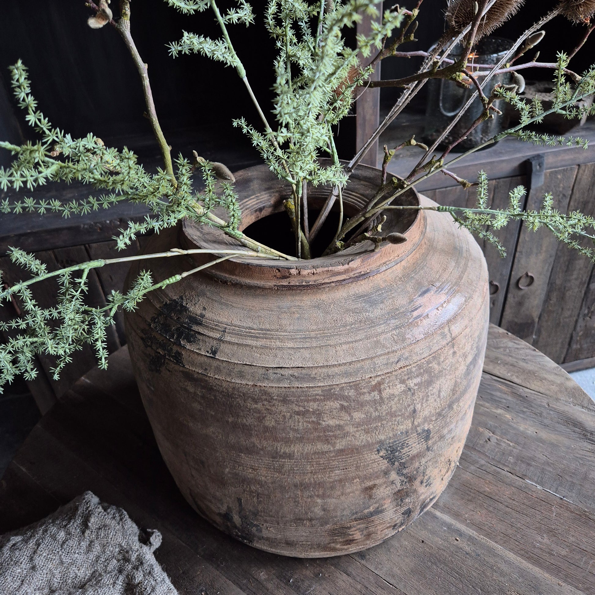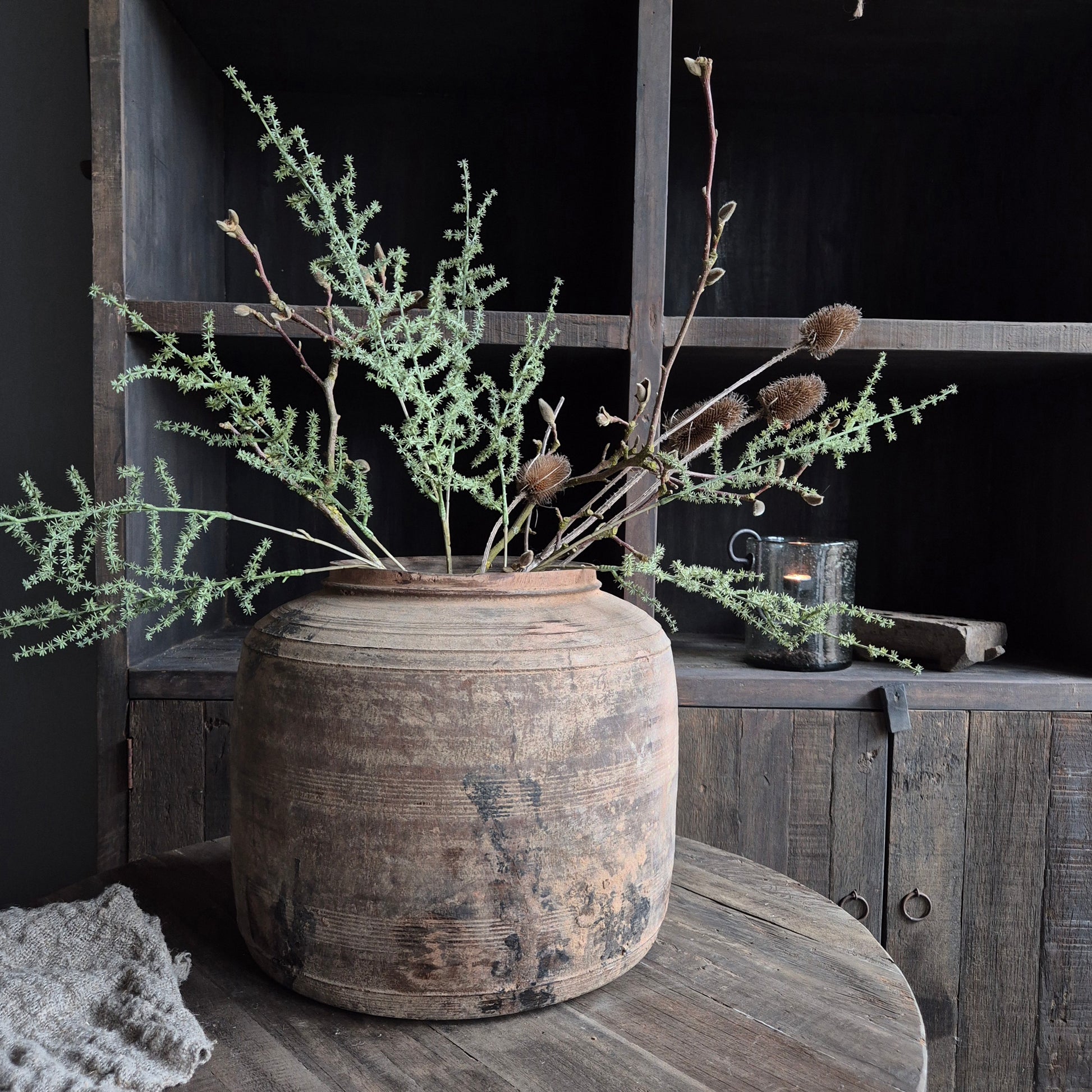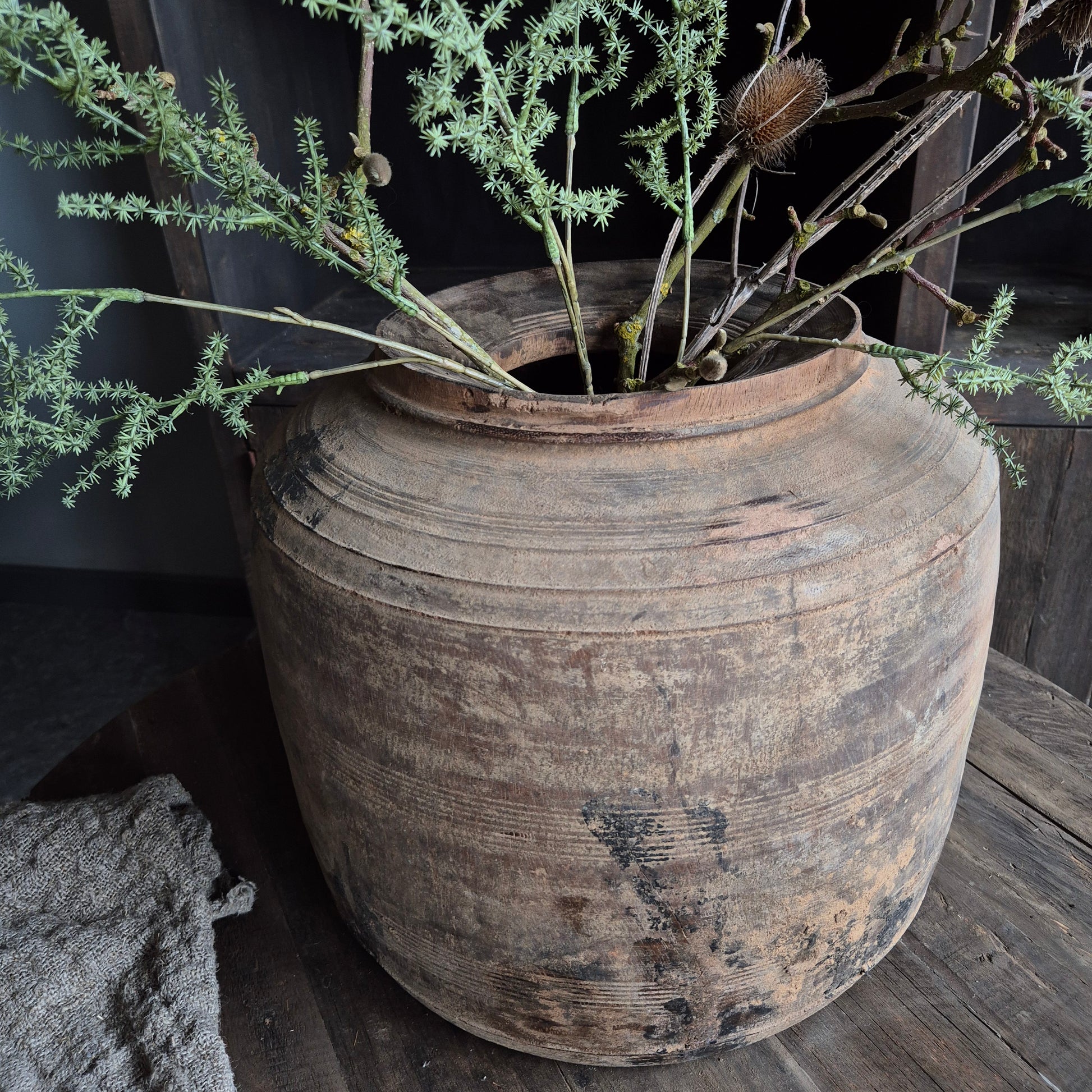 Een prachtig oud houten Nepalese kruik XL. Staat mooi binnen een stoer, sober en landelijk interieur!