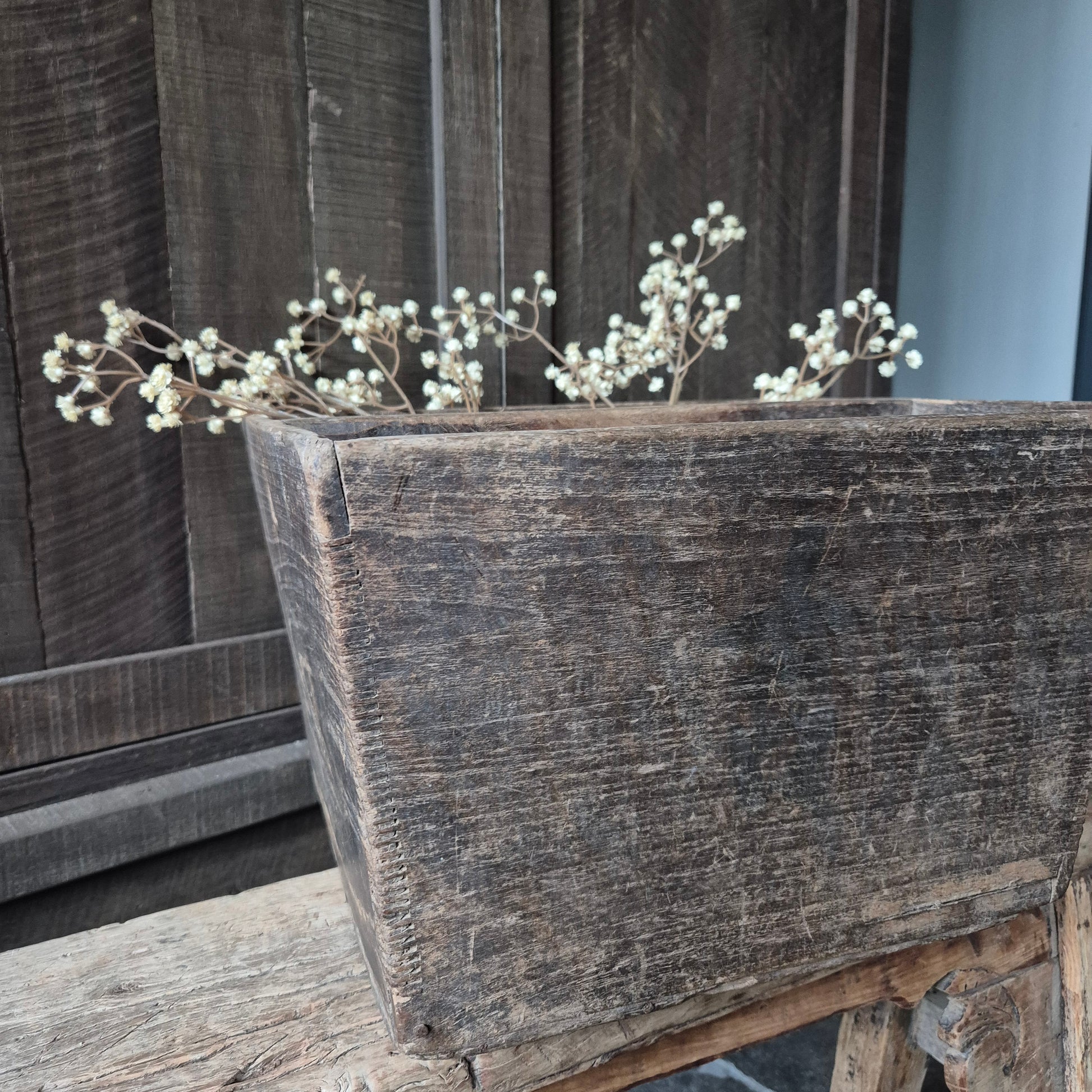 Een prachtig uniek oud houten rijstbak in sobere kleuren met een handvat. Deze uniek houten rijstbak is erg leuk om je tijdschriften in te bewaren.