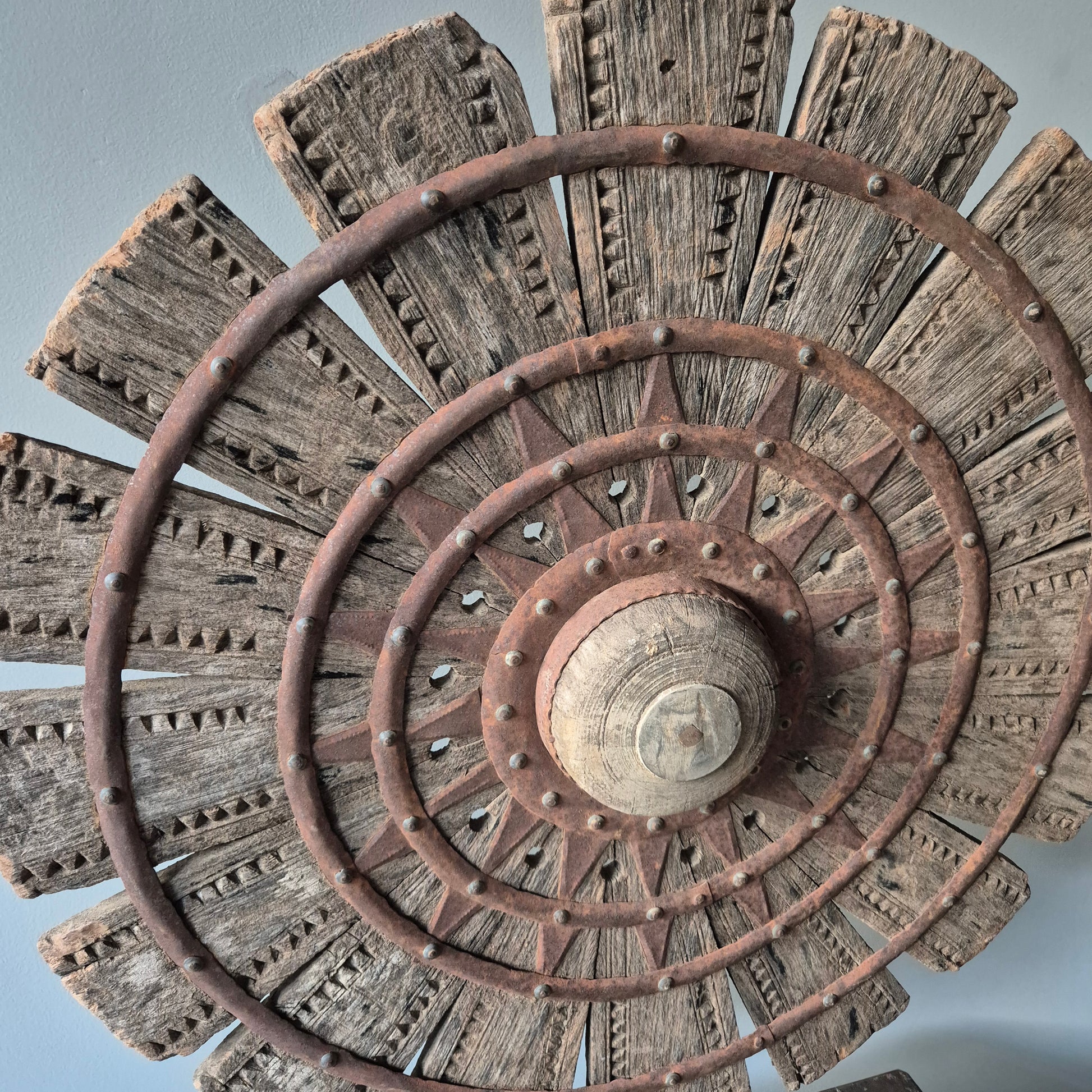Uniek oud houten spinnewiel op statief nr. 3